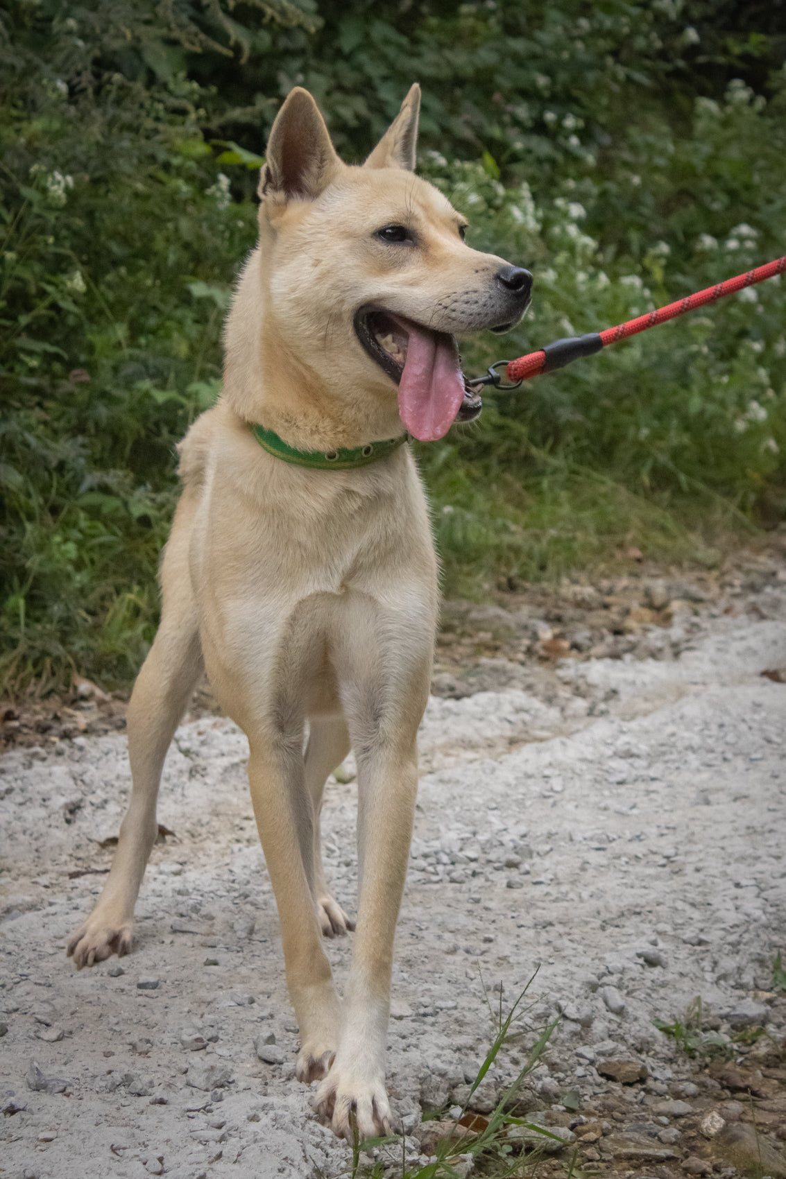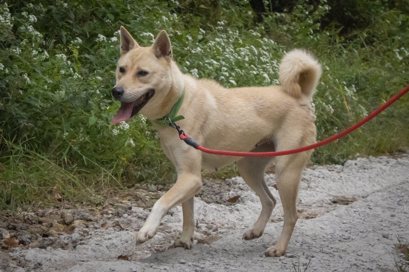 Dieses goldene Mädchen ist eine etwa 16 kg schwere Jindo-Mischlingshündin, die im Juli 2021 in unser Tierheim kam. Sie wurde schätzungsweise 2019 geboren und streifte umher, bevor sie ins Tierheim gebracht wurde. Autumn ist ein sehr unabhängiges Mädchen, aber sie hat auch eine sehr süße und sanfte Seite, die sie Menschen zeigt, die sie kennt und denen sie vertraut.