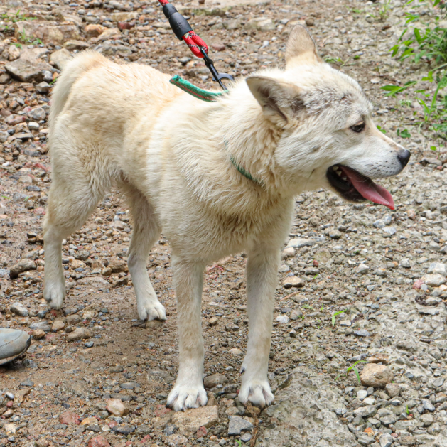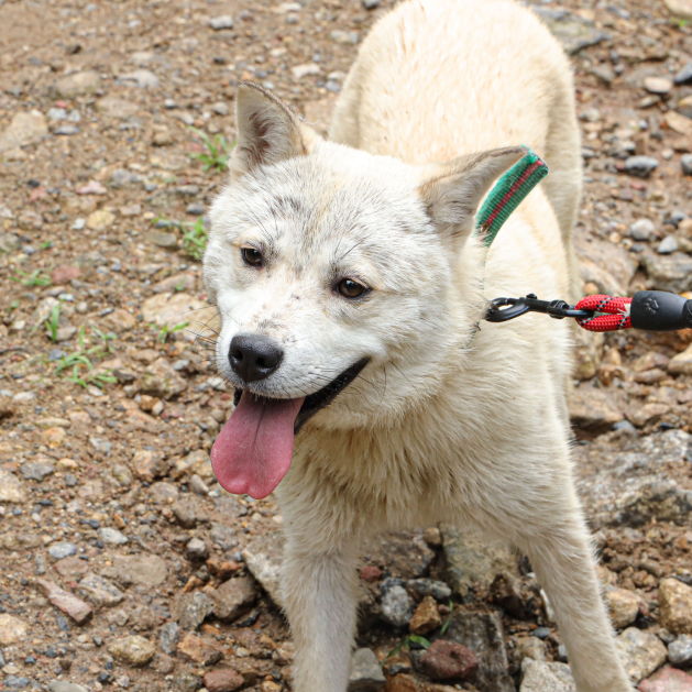 Wir freuen uns, Ihnen Bagel vorzustellen, einen freundlichen männlichen Jindo-Mischlingshund, der Anfang Juni 2021 Teil unserer Tierheimfamilie wurde. Bagel wurde als Streuner gefunden, und obwohl wir sorgfältig nach einem Mikrochip gesucht haben, hatte er keinen. Dennoch hat Bagel mit seiner sanften Art und seinem freundlichen Wesen unsere Herzen erobert. Er hat eine einzigartige Fellfarbe, die eine Mischung aus Weiß, Creme und grauen Nuancen ist und ihn unwiderstehlich niedlich macht. Obwohl er anfangs etwas schüchtern war, hat Bagel sich gut an das Leben in unserem Tierheim angepasst. Er genießt die Gesellschaft seiner Mitbewohner im Zwinger und lernt nach und nach, dem Vertrauen und der Freundlichkeit unserer engagierten Freiwilligen zu schätzen.