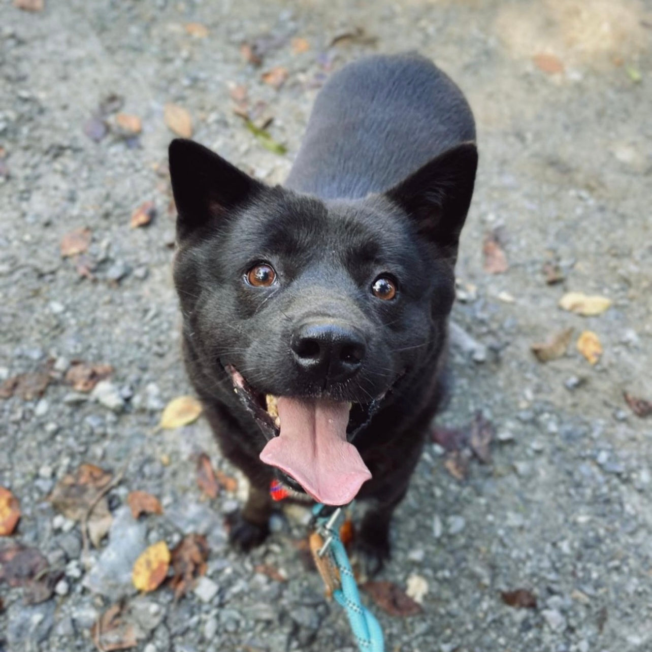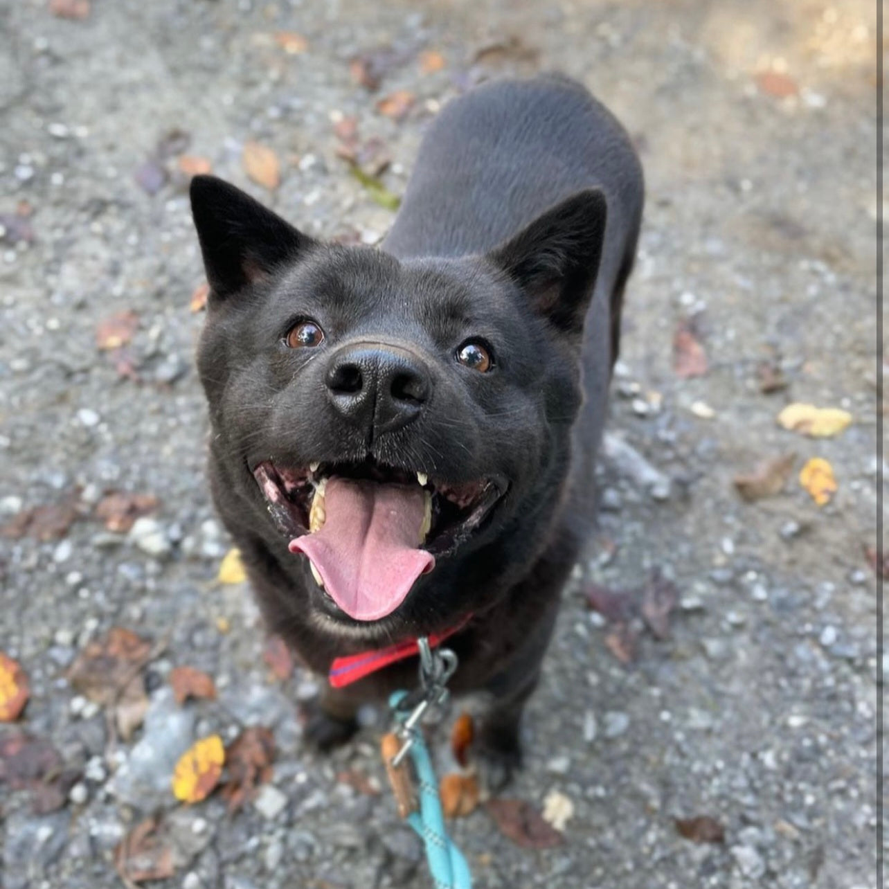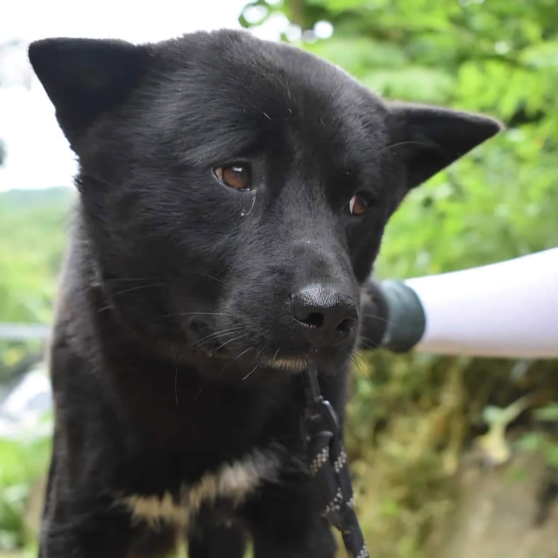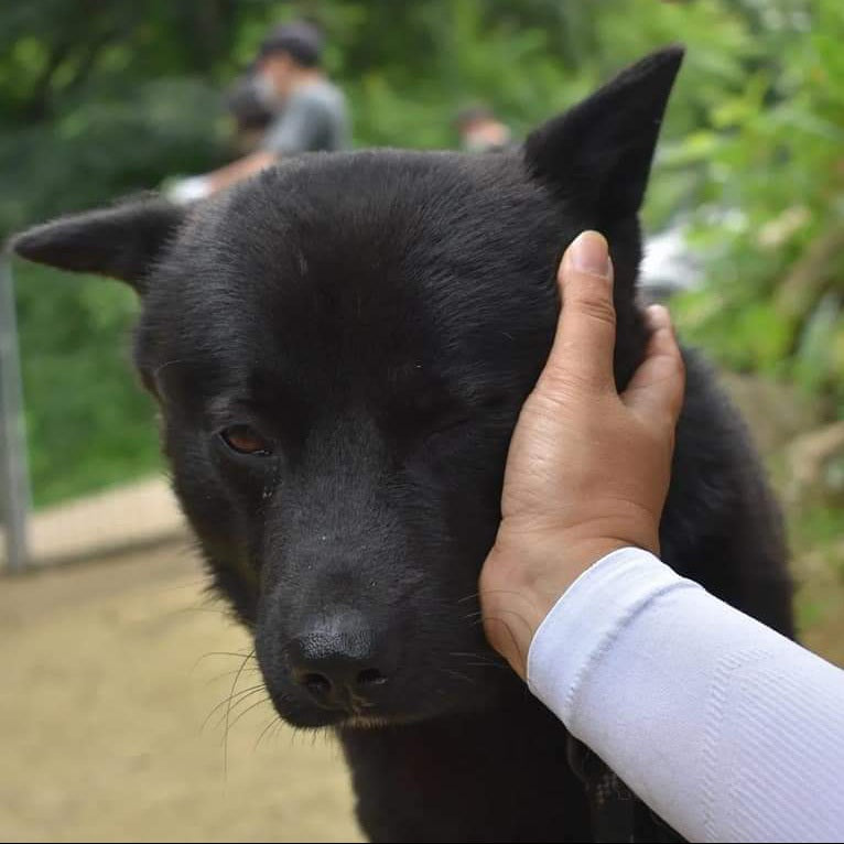 Er ist auch ein sehr hübscher Hund mit großen, runden Rehaugen, die hell und haselnussbraun sind. Er ist ein schwarzer Hund, was es hier in Korea schwierig machen wird, einen Adoptierenden zu finden, da schwarze Hunde hier nicht häufig als Haustiere gewählt werden. Aber Bambi ist auf seine Art niedlich, er hat sogar eine weiße Brust und eine gefrostete Pfote.