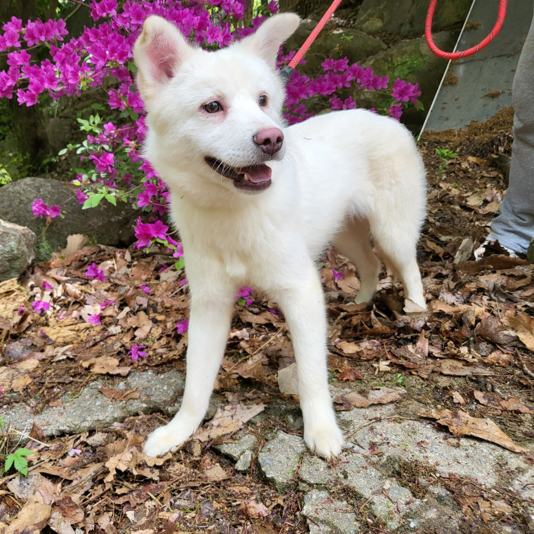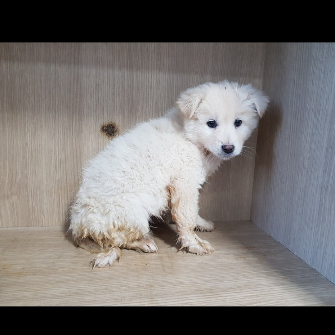 Geboren etwa im September 2021, ist Bentley ein männlicher, flauschiger Mischlingswelpe der Rasse Jindo, der im November 2021 in unser Tierheim aufgenommen wurde. Er und sein Bruder Royce, benannt nach Autos, wurden auf der Straße gefunden, als sie gerade zwei Monate alt waren und ohne ihre Mutter. Die beiden waren die einzigen in der Nähe, also wurden sie ins Tierheim gebracht. Beide Auto-Geschwister waren super duper flauschig und mollig, als sie zu uns kamen, und seither sind sie in ihr Fell und ihre Speckröllchen hineingewachsen! Sie sind ziemlich schüchtern, da sie die neue Welt ohne ihre Mutter erkunden müssen, aber sie lernen langsam mit uns, dass es schön ist zu kuscheln und Spaß macht, nach draußen zu gehen. Bentley ist unser hellerer Creme-Geschwister mit einer süßen, rosa Nasenspitze! Er ist sehr lieb und schüchtern und wächst wie Royce in sein flauschiges Fell hinein. Bentley ist noch recht schüchtern, da er im so jungen Alter ohne seine Mutter lernen muss, in der Welt zu leben, aber er spielt gut mit seinem Bruder und anderen Welpen in unserem Tierheim.
