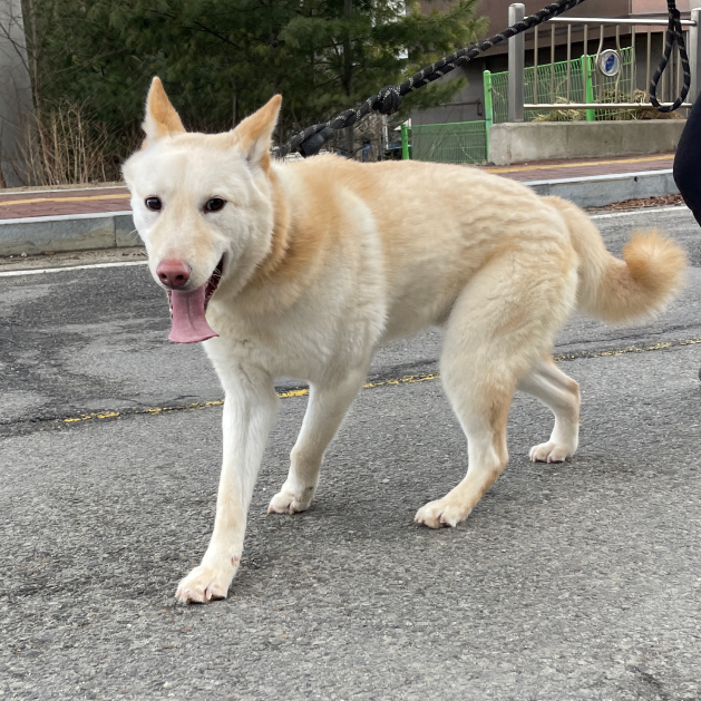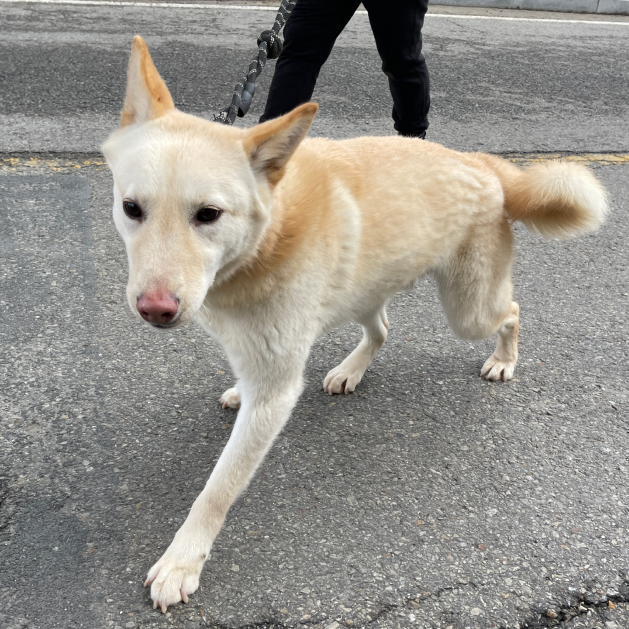 Booyong ist ein männlicher Jindo-Mischlingshund mit einem wunderschönen cremefarbenen Fell. Er kam im März 2021, im Alter von nur wenigen Monaten, in unser Schwestertierheim, das Yongin Pound. Booyong und seine sechs Geschwister wurden herumstreunend im Viertel gefunden, bedeckt mit Schlamm und voller Unfug. Während die meisten seiner Geschwister bereits ihr Für-immer-Zuhause gefunden haben, wartet Booyong immer noch auf seins. Da er im Tierheim aufgewachsen ist, hatte er nicht viel Kontakt zur Außenwelt. Mit seinem bezaubernden Aussehen und einer niedlichen rosa Nase ist Booyong begierig darauf, all die Wunder der Welt kennenzulernen und maximalen liebevollen Beistand zu erfahren.
