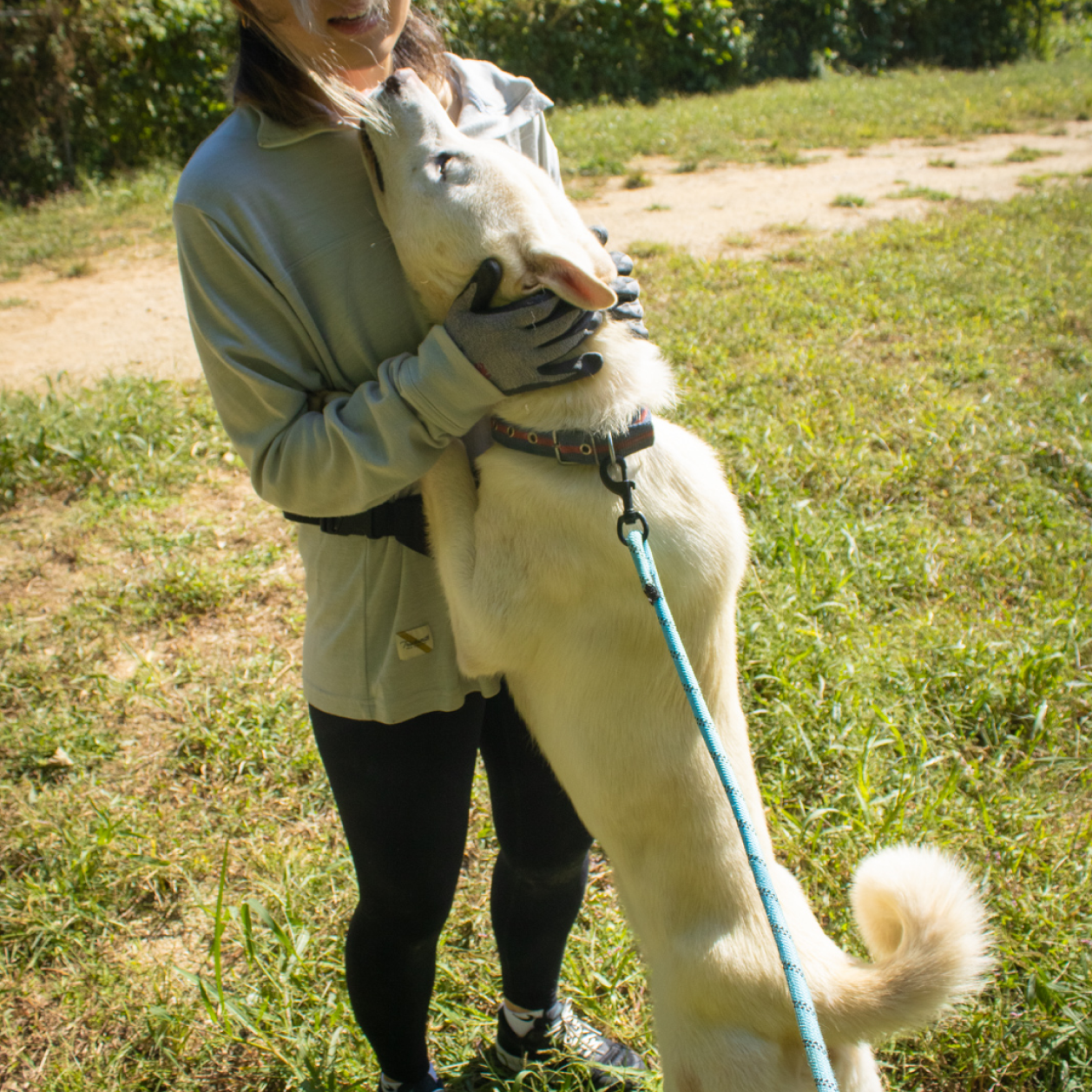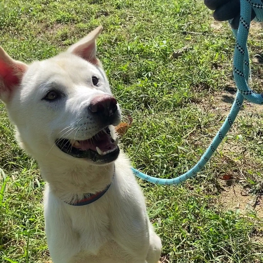 Hier ist Boyd! Boyd ist ein gutaussehender und schmaler Jindo-Rüde, der von jugendlichem Enthusiasmus nur so strotzt! Er kam letztes Jahr ins Tierheim und liebt es, Zeit mit dem Personal und den Freiwilligen zu verbringen. Er ist sehr motiviert durch Futter und du wirst der Mittelpunkt seiner Welt sein, wenn du leckere Leckerlis in der Hand hast! Dieser schlaue Junge wird aufgeregt mit einem unschlüssig herumflatternden Ohr für sein Leckerli brav Sitz machen. Selbst ohne Futter liebt Boyd Streicheleinheiten und Kuscheln und ist einfach glücklich, am Leben zu sein und Aufmerksamkeit von Menschen zu bekommen! Da er manchmal etwas zu enthusiastisch in der Nähe anderer Hunde ist, lebt er derzeit in seinem eigenen Zwinger ohne Mitbewohner und zieht während der Spaziergänge in Richtung anderer Hunde. Da er jedoch so motiviert durch Futter ist, glauben wir, dass er mit etwas Training gut darauf fokussiert werden kann, bei Spaziergängen auf seinen Menschen zu achten.