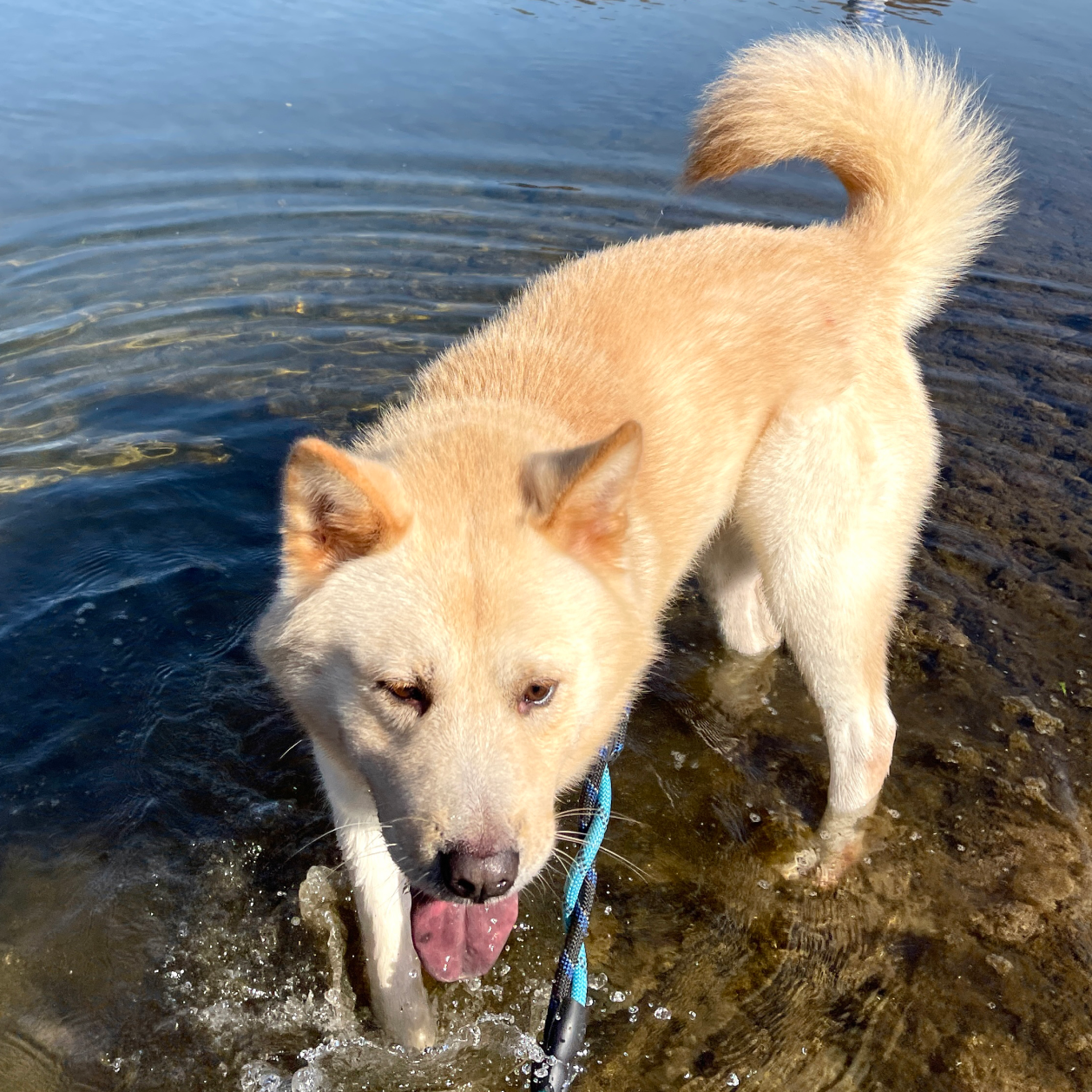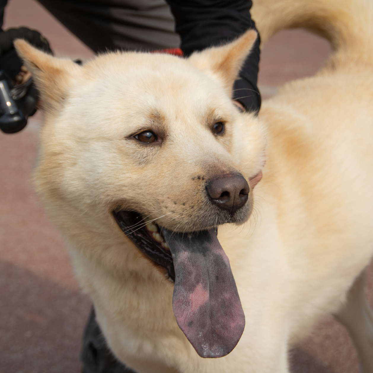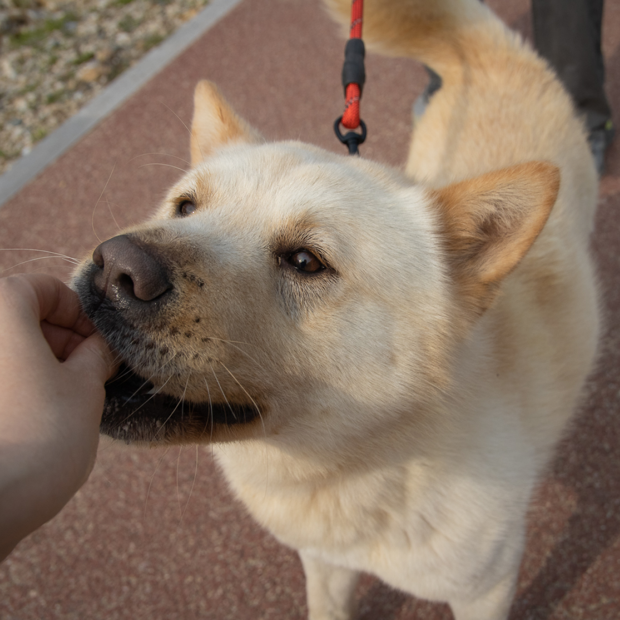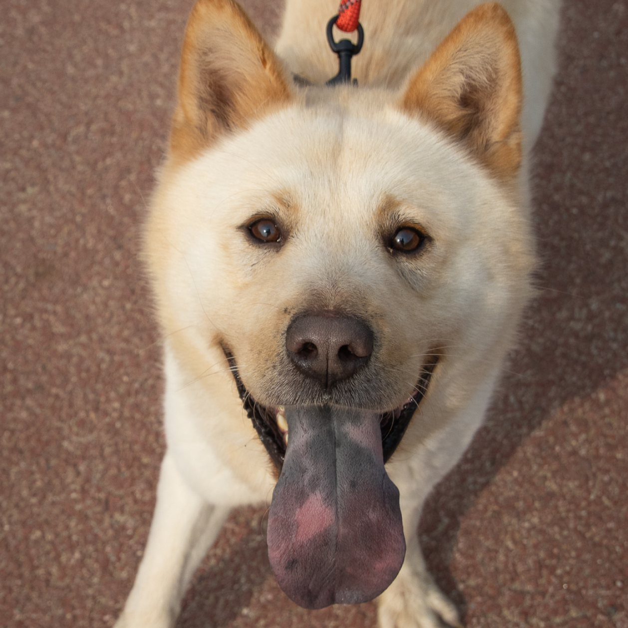 Butterscotch ist ein Pungsan-Mischlingshund, wiegt 30 kg und wurde mit einem Halsband auf der Straße gefunden, während er fröhlich auf Menschen zulief. Dies führte letztendlich dazu, dass die Menschen die Behörden kontaktierten, da sie sich von einem riesigen Hund, der auf sie zurennt, erschreckten. Er wurde Ende Juli 2020 in unser Tierheim aufgenommen, aber niemand kam, um ihn abzuholen oder einen verlorenen Hund zu melden. Butterscotch ist ein so lieber Junge! Er ist freundlich, liebt Menschen und ist sehr begeistert, nach draußen zu gehen! Er zieht ein wenig an der Leine, aber einfaches Training kann das beheben. Er ist nicht zu energiegeladen und zieht sich oft zur Erholung und zum Ausruhen in den Schatten zurück, wenn er auf den Spaziergängen zu müde wird.