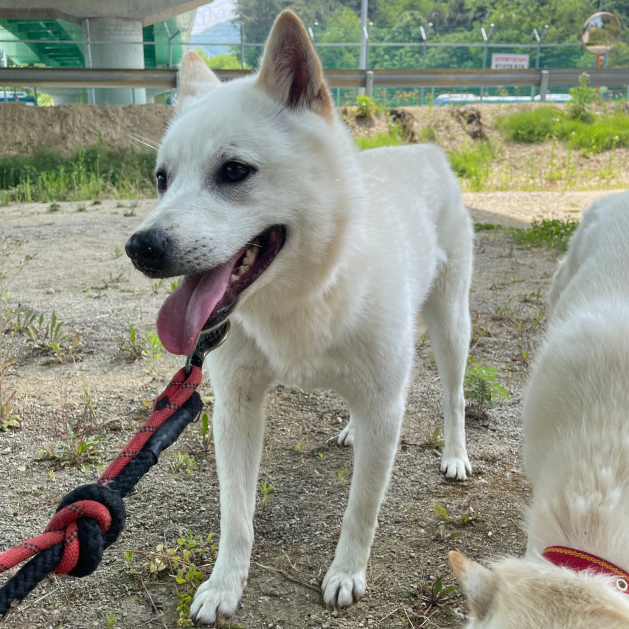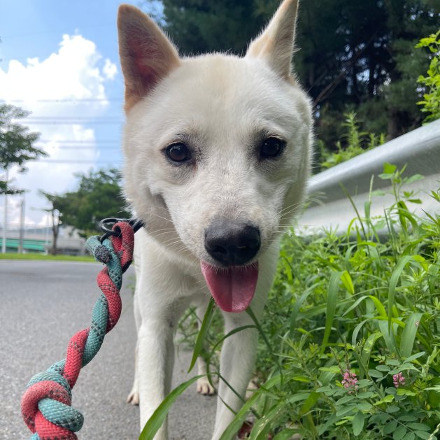 Daehan ist ein männlicher cremefarbener Jindo Mischling, der im Mai 2021 in unser Partner-Tierheim, das Yongin Pound, aufgenommen wurde. Er wurde gemeinsam mit seinen vier Geschwistern in der Nähe eines Gebäudes gefunden und alle wurden ins Tierheim gebracht. Daehan und seine Geschwister waren damals erst 2 Monate alt und ohne Mutter, so dass sie im Tierheim aufwachsen mussten. Glücklicherweise wurden zwei seiner Geschwister sofort adoptiert. Daehan und sein Bruder Manse blieben jedoch im Tierheim zurück. Die beiden Brüder sind exakte Zwillinge! Sie sehen sich nicht nur ähnlich, sondern verhalten sich auch gleich. Daehan ist etwas größer als sein Bruder Manse, aber beide Jungs sind absolut liebenswert und sanftmütig. Als sie zum ersten Mal mit unseren freiwilligen Helfern spazieren gingen, waren sie noch recht schüchtern, da sie die meiste Zeit ihres Lebens nur Betonwände kannten. Sobald sie jedoch merkten, dass sie uns vertrauen konnten, begannen Daehan und sein Bruder Manse draußen Spaß zu haben! Wir haben festgestellt, dass Daehan ein sehr verschmuster Junge ist, der einfach nur die ganze Aufmerksamkeit haben möchte! Sobald er sich eingewöhnt hat, ist er super freundlich zu jedem und allem! Er braucht nur etwas moralische Unterstützung, um Vertrauen in die neue Welt zu gewinnen.