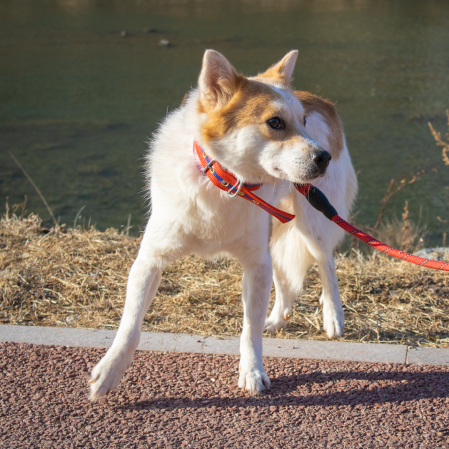 Dandy ist ein männlicher Jindo-Mischlingshund mittlerer Größe. Wir sind uns nicht sicher, wann er ins Tierheim kam, da seine Aufnahmedaten fehlen, aber es war wahrscheinlich vor 2019 während einer der Wechsel in der Leitung des Tierheims. Dandy ist als der ängstliche Hund bekannt. Obwohl er schon so lange im Tierheim ist, ist er immer noch ziemlich ängstlich und fürchtet sich, wenn wir ihn und seine Mitbewohner anleinen, um nach draußen zu gehen. Aber wir beobachten, wie er sich langsam verändert! Bei jedem Spaziergang wird er ein kleines Stück offener. Er möchte definitiv raus, hat aber Angst vor dem Umgang mit Menschen. Sobald er draußen ist, ist er in Ordnung und gut drauf! Wir können sehen, wie die Anspannung in Dandy langsam verschwindet, je länger er Zeit draußen mit unseren Freiwilligen verbringt. Dandy braucht einfach Stabilität und liebevolle Fürsorge in seinem Leben.