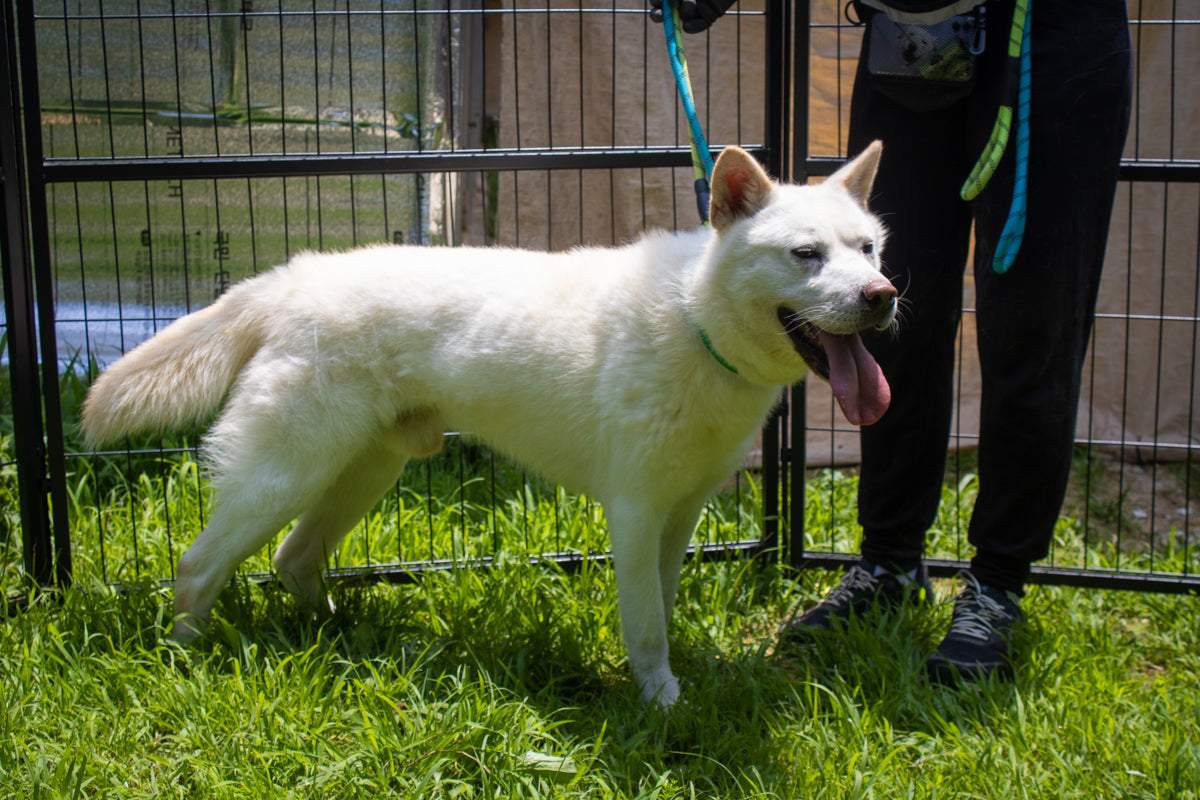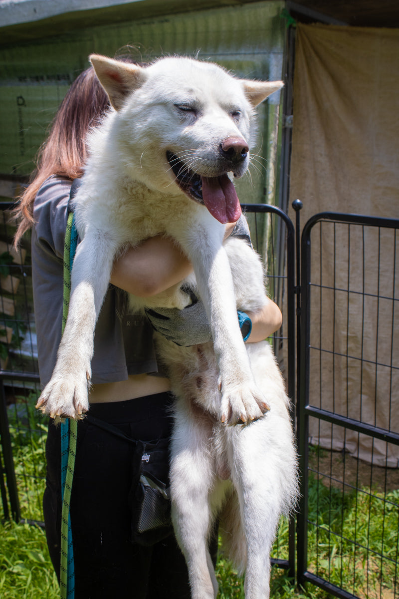 Unsere Hunde werden von Fleischfarmen gerettet oder von der Straße aufgenommen und in unser Tierheim gebracht. Daher haben wir keine Informationen darüber, wie sie sich gegenüber Katzen oder Kindern verhalten.