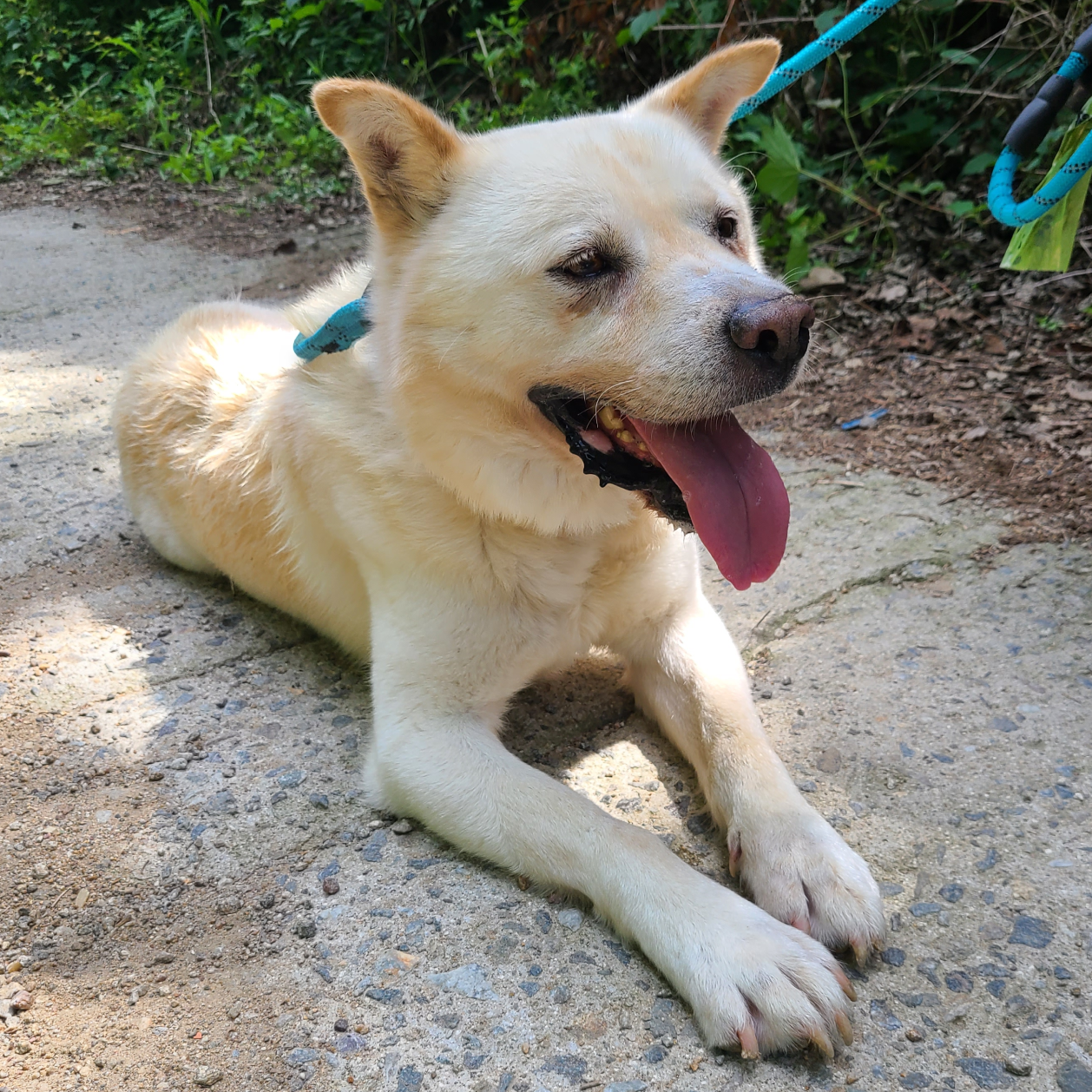 Es könnte am Wetter gelegen haben, aber Duke schien schnell müde zu werden und brauchte keine übermäßige Bewegung. Bevor wir überhaupt den Berg hinunterkamen, ruhte Duke bereits im Schatten und genoss all die Streicheleinheiten und Leckerlis, die wir ihm gaben. Er ist einfach ein großartiger Hund zum Umgang. Ich hoffe wirklich, dass er ein schönes Zuhause mit einem großen Garten und einem Besitzer findet, der ihm viel Liebe schenkt."
