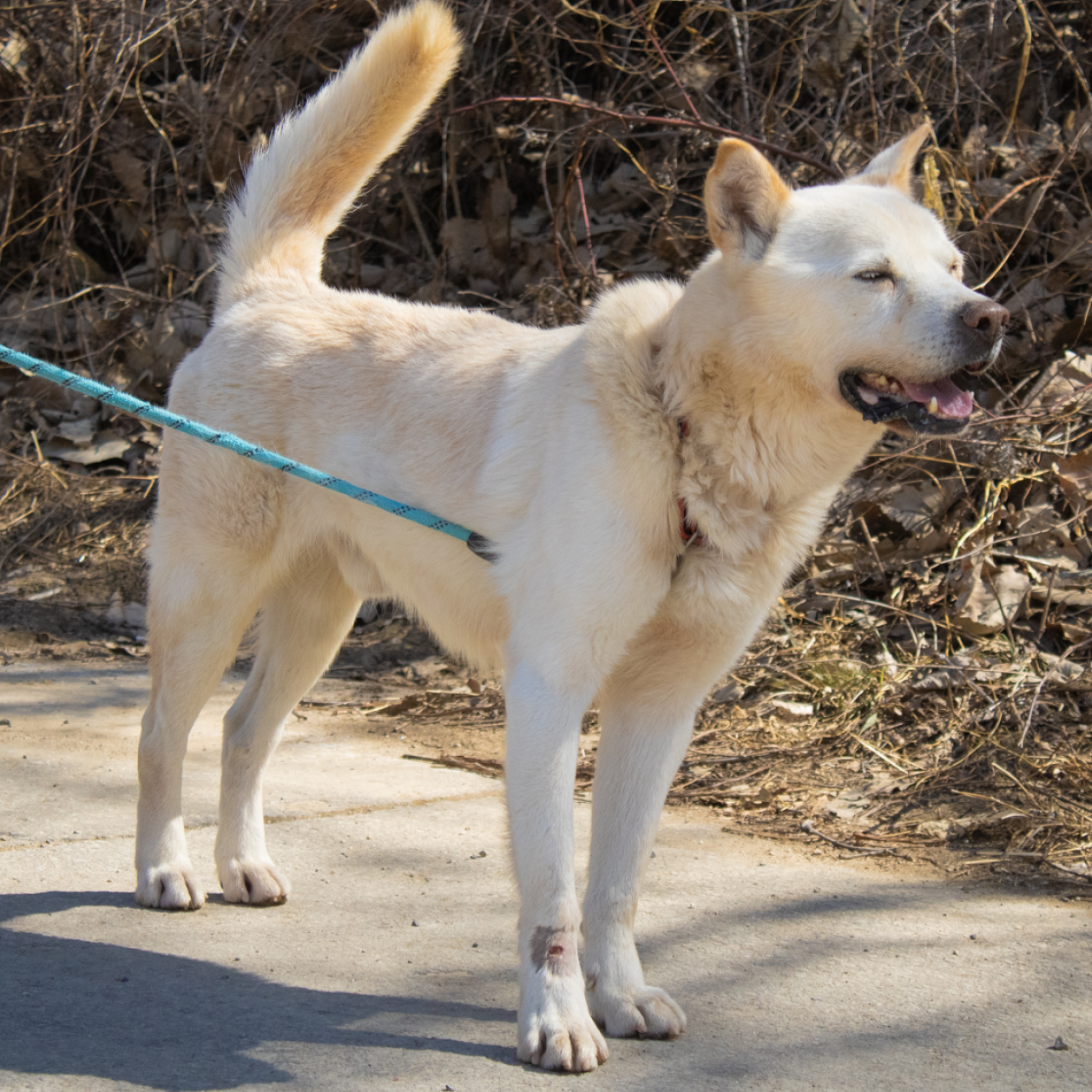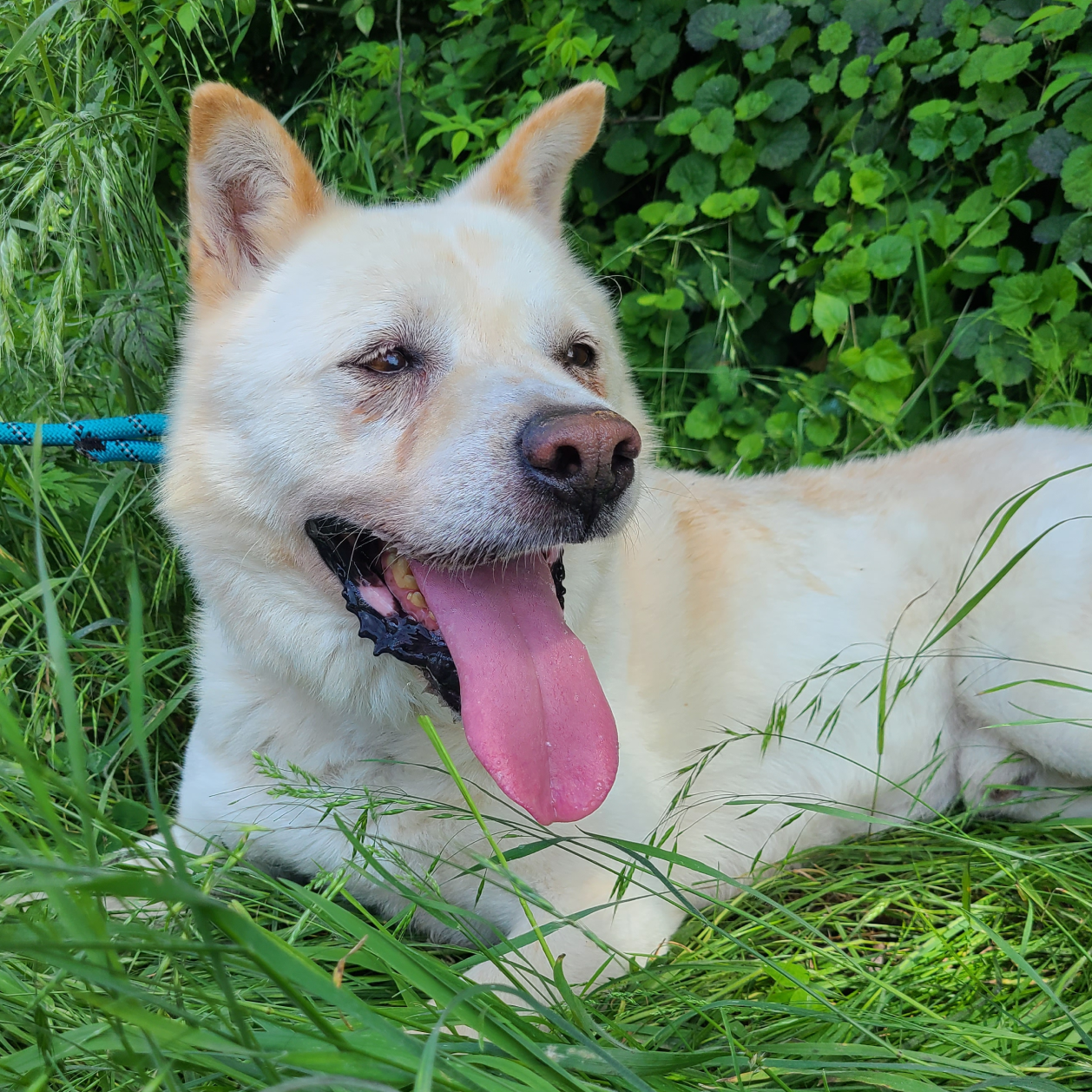 Duke ist ein männlicher Jindo, der im Januar 2021 ins Tierheim aufgenommen wurde. Trotz seines Aufenthalts im Tierheim ist Duke ein absoluter Gentleman! Er teilt sein Zwinger mit einem viel kleineren Hund namens Benita und versteht sich sehr gut mit ihr. Er ist freundlich zu allen und allem und ein echter Schmusebär, der es liebt gestreichelt zu werden und Babystimmen zu hören. Duke ist ein starker Junge und zieht an der Leine, aber das ist kein großes Problem, denn er liebt Leckerlis über alles und ist sehr motiviert durch Futter, was das Training zum Kinderspiel macht!