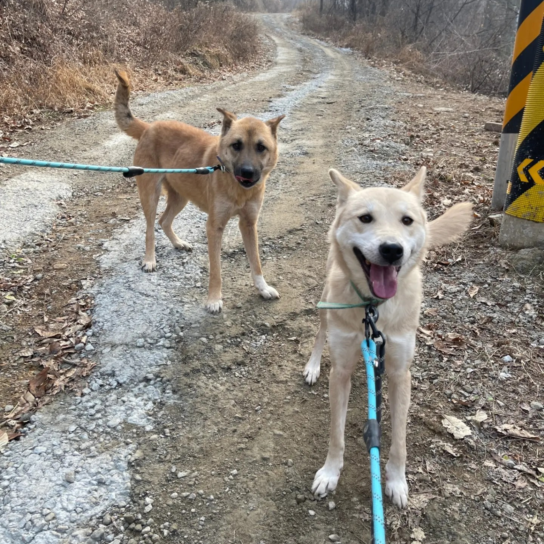 Einer unserer Freiwilligen sagte Folgendes über Elana: "Sie ist die mutigere von beiden und übernimmt die Führung. Sie war wirklich aufgeregt, draußen zu sein, und zögerte nicht, an diesem heißen Tag ihre Pfoten in den Fluss zu tauchen, während Matt zufrieden zuschaute. Sie hatte mehr Energie, zog aber nicht zu stark an der Leine. Sie reagierte gut auf die Leine und blieb in der Nähe ihrer menschlichen Begleiter. Sie war mehr daran interessiert, die Gegend zu erkunden, als Leckerlis zu essen, und ließ Matt das essen, was sie fallen ließ. Es war wirklich niedlich zu sehen, wie Elana Matt überprüfte und ihm Hundeküsse gab, weil er etwas langsamer ist. Elana genoss es, gebürstet zu werden, mochte es aber nicht, wie die meisten Hunde, wenn man ihre Nägel berührte."
