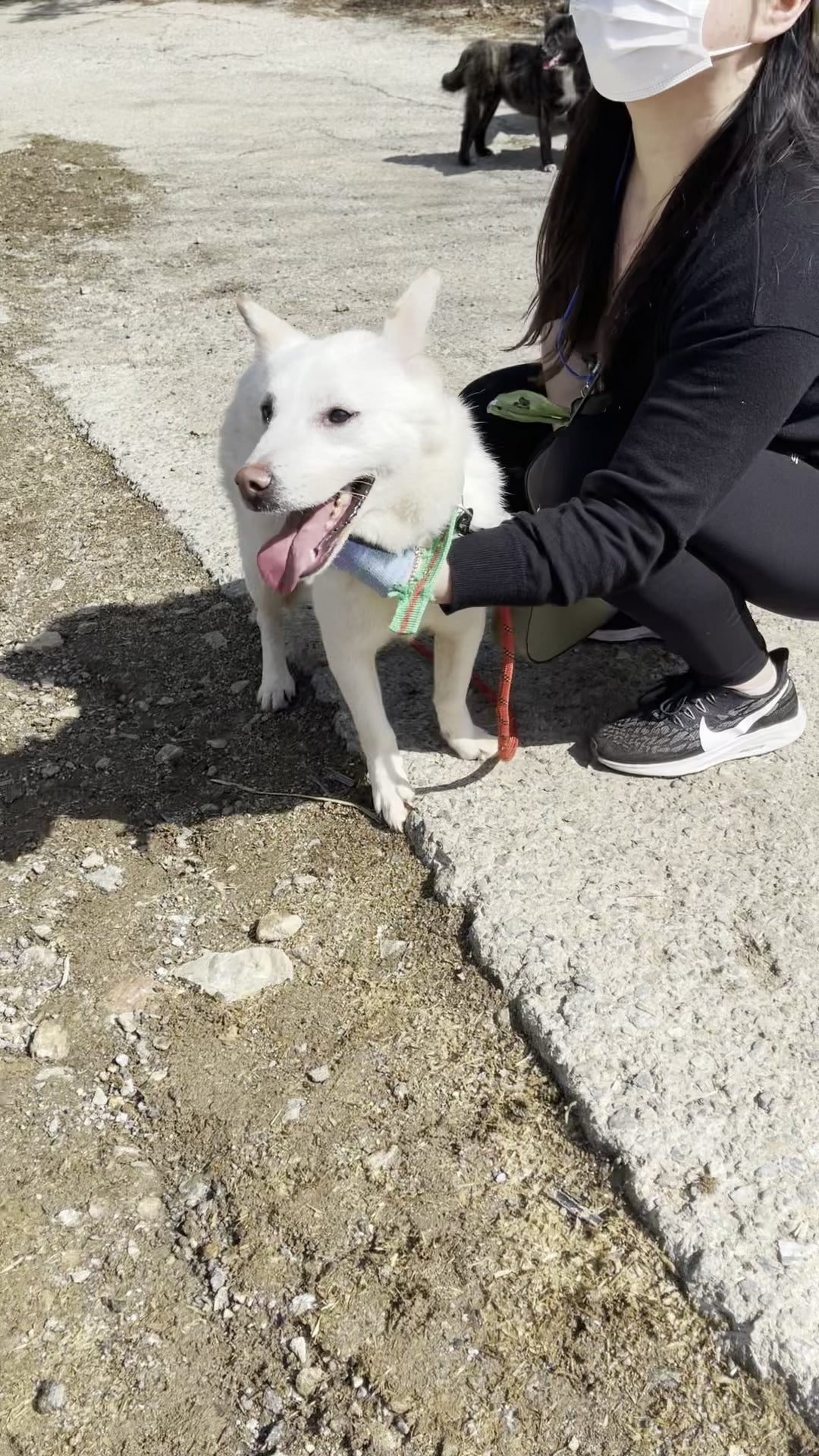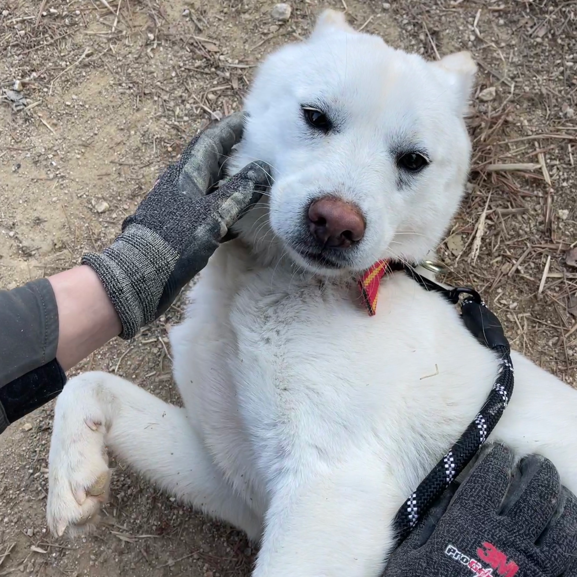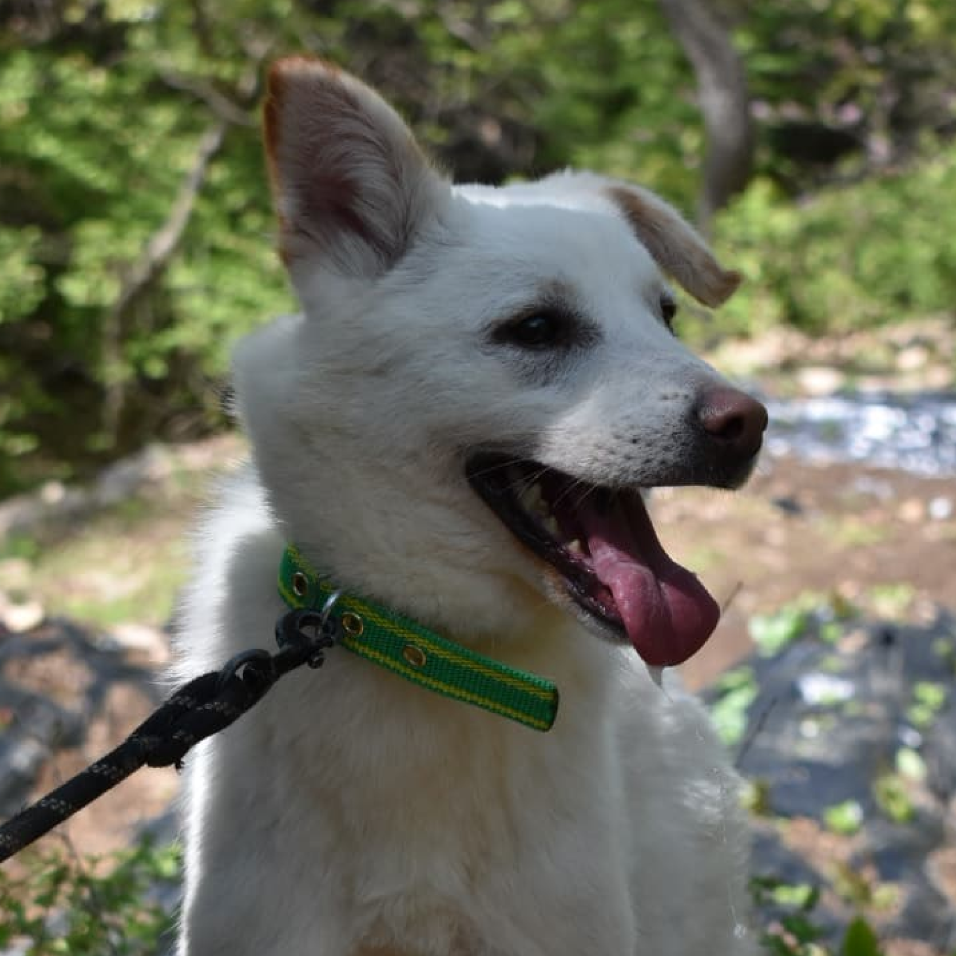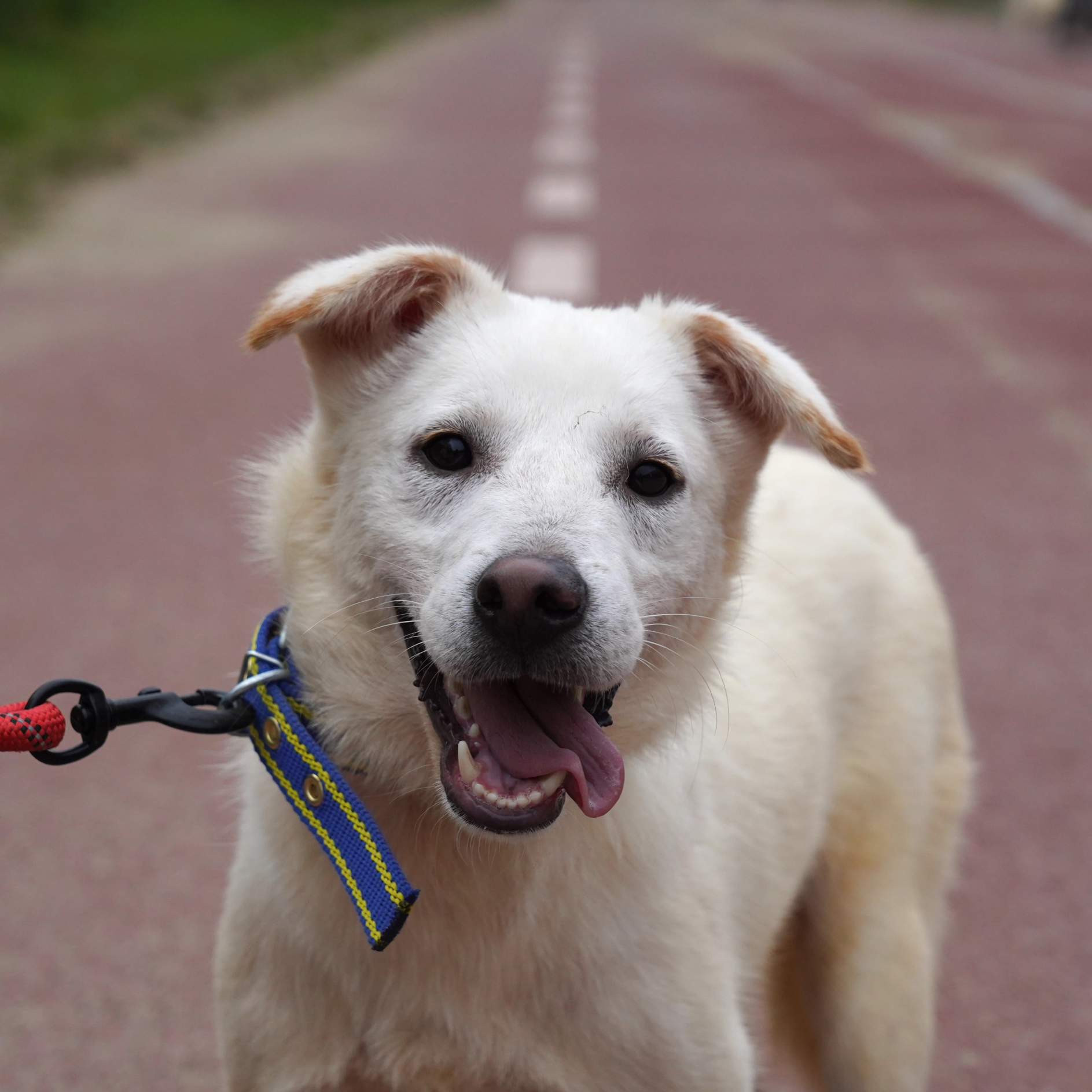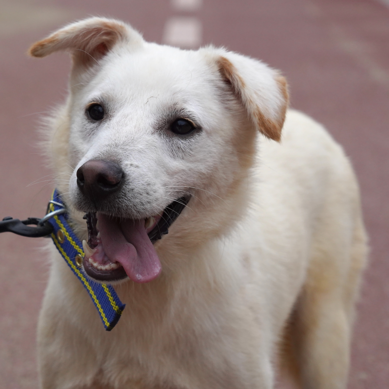 "Schaut euch nur seine niedlichen Ohren an!! Er hat das größte und strahlendste Lächeln. Das ist Fizz aus Zwinger D2. Fizz war ziemlich schüchtern. Er zuckte bei lauten Geräuschen von Autos zusammen und wich zurück, wenn andere Hunde oder Menschen sich näherten. Er ist ein wunderschöner Junge, der sanfte Streicheleinheiten genießt, wenn ich mich langsam annähere. Er läuft gut und zieht nicht zu stark an der Leine. Fizz sucht nach einem geduldigen Menschen, der ihm viel Liebe schenken kann."