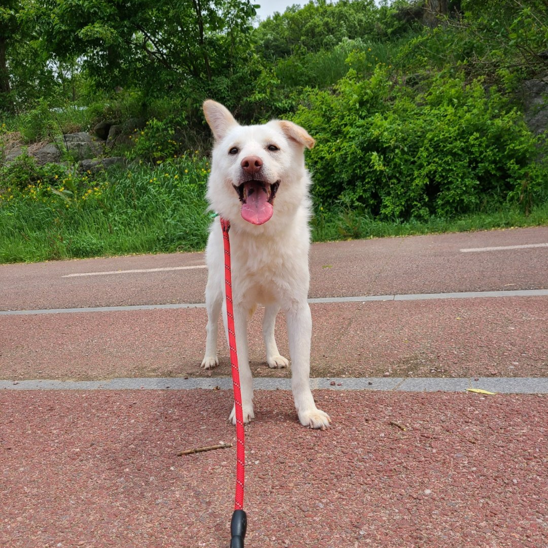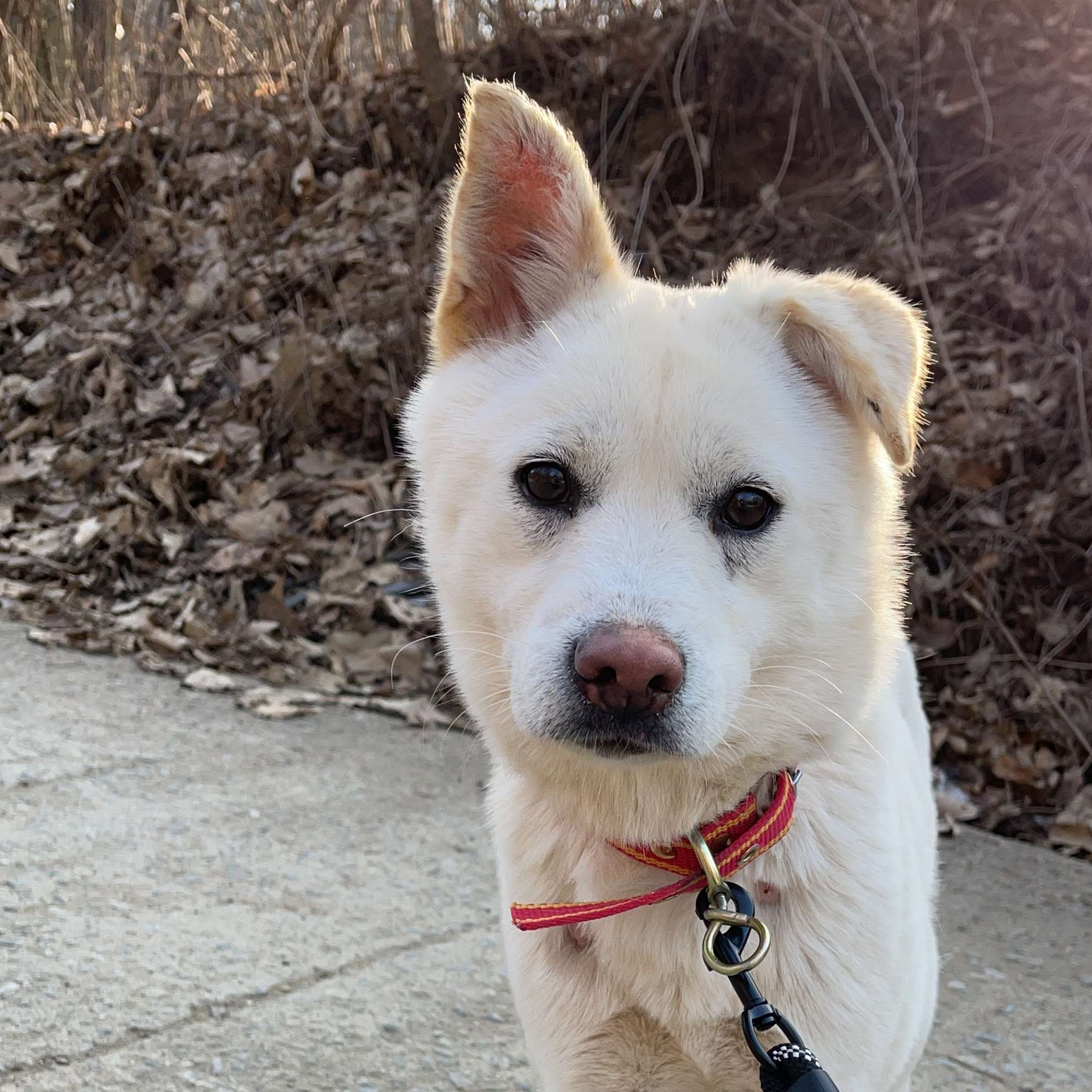 Everypawdy, trefft Fizz (oder 미리내 auf Koreanisch)! Fizz ist ein 15 kg schwerer Mischlingsrüde, der Ende Januar 2020 im Alter von nur 2 Monaten in unser Tierheim aufgenommen wurde. Er wurde zusammen mit seinen 5 Geschwistern in einem Karton am Straßenrand aufgefunden. Fizz ist ein äußerst schüchterner Junge, der sein ganzes Leben im Tierheim verbracht hat und daher wenig Kontakt zur Außenwelt hatte. Dadurch ist Fizz sehr vorsichtig und zurückhaltend, wenn es darum geht, mit unseren Freiwilligen spazieren zu gehen. Er geht immer noch gerne spazieren, solange er von einem selbstbewussten und einfühlsamen Freiwilligen begleitet wird. Fizz ist mit seinem einen nach oben und einem nach unten stehenden Ohr einfach entzückend. Er ist ein schüchterner Junge, der nur einen kleinen Schubs braucht, um glücklich und entspannt zu sein.