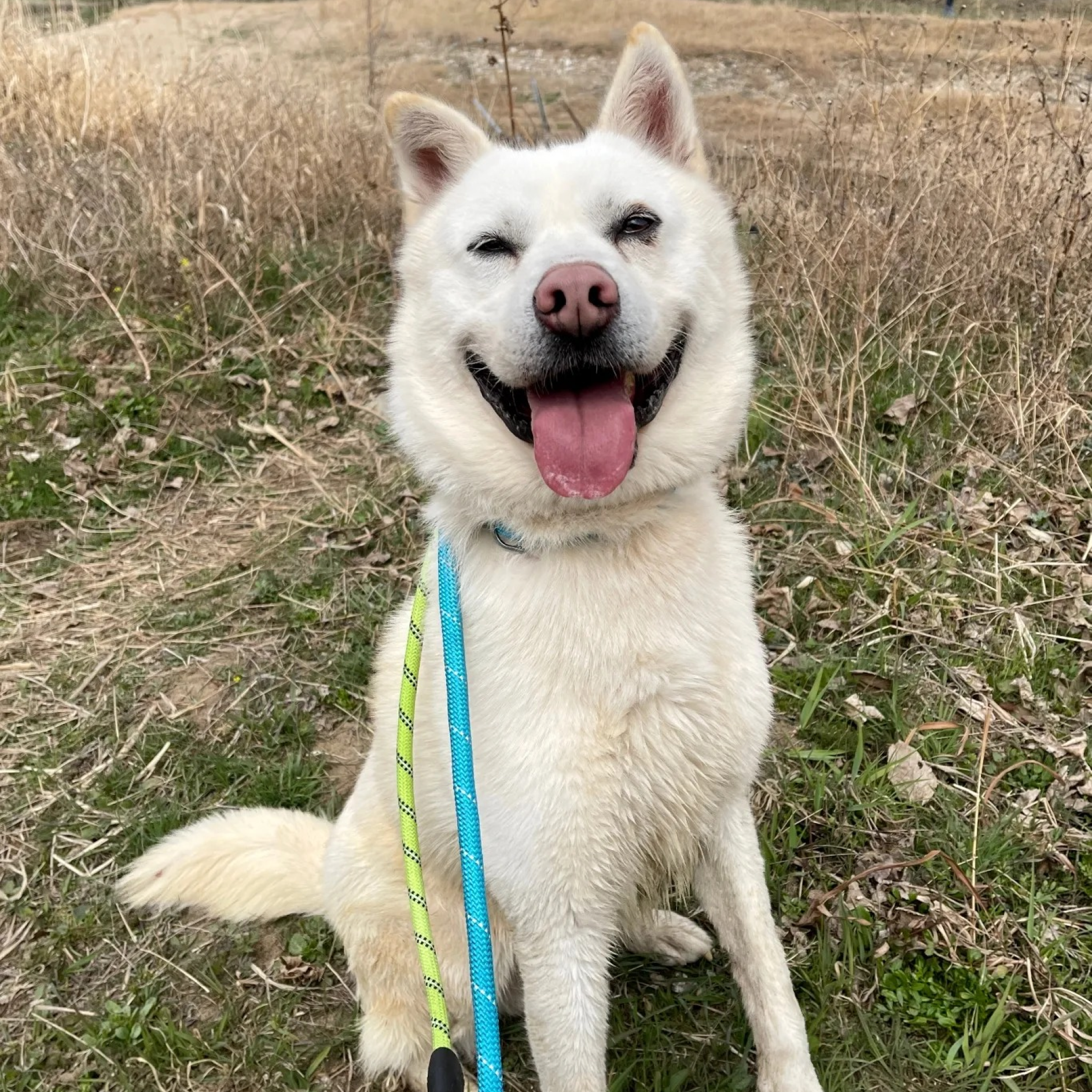 Harold ist ein großer, majestätischer Jindo-Rüde, der zu Beginn des letzten Jahres ins Tierheim kam. Er ist eine lebhafte und glückliche Seele, die sich von Anfang an gut mit den Freiwilligen verstanden hat. Bei seinem ersten Spaziergang zeigte er seine Intelligenz, indem er verschiedenen Befehlen für leckere Leckerlis und Liebe von den Menschen folgte. Harold liebt die Natur, das Erkunden und Leckerlis und hat ein einzigartiges, ausdrucksstarkes Gesicht mit einem Auge, das etwas kleiner ist als das andere. Sein großes, fröhliches Lächeln steckt an, und er sitzt freudig für seine Leckerlis!