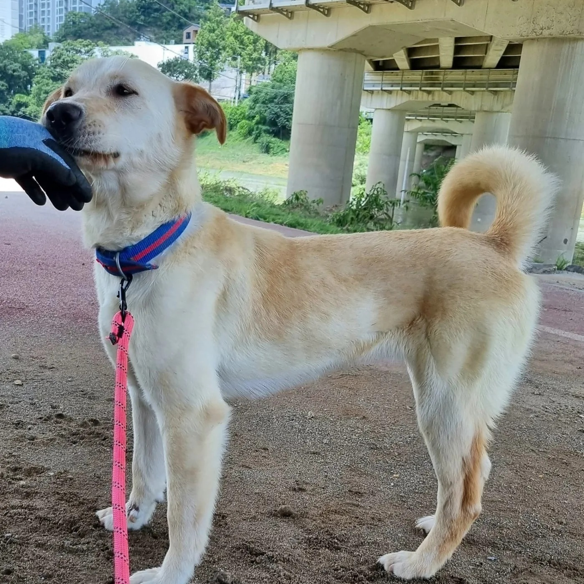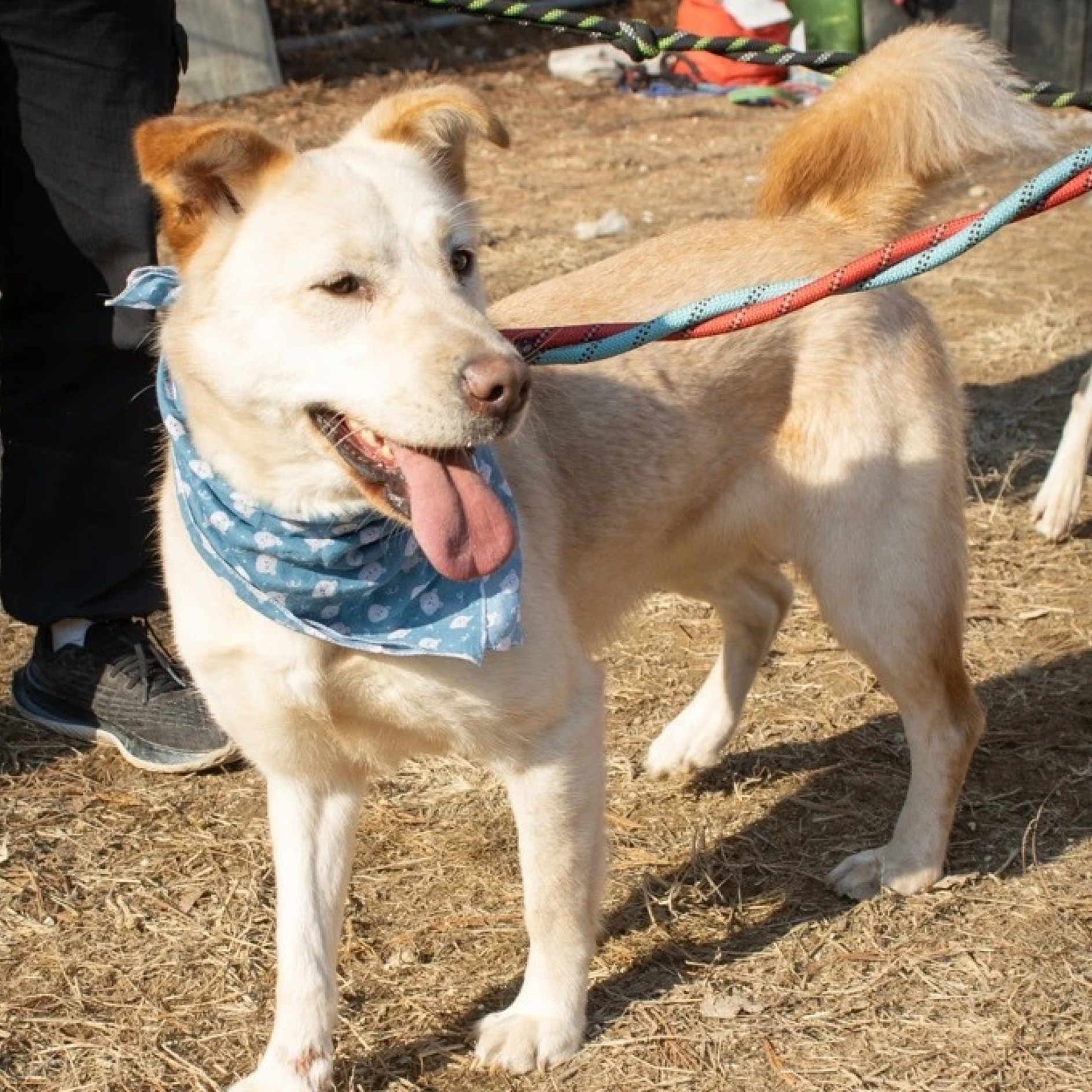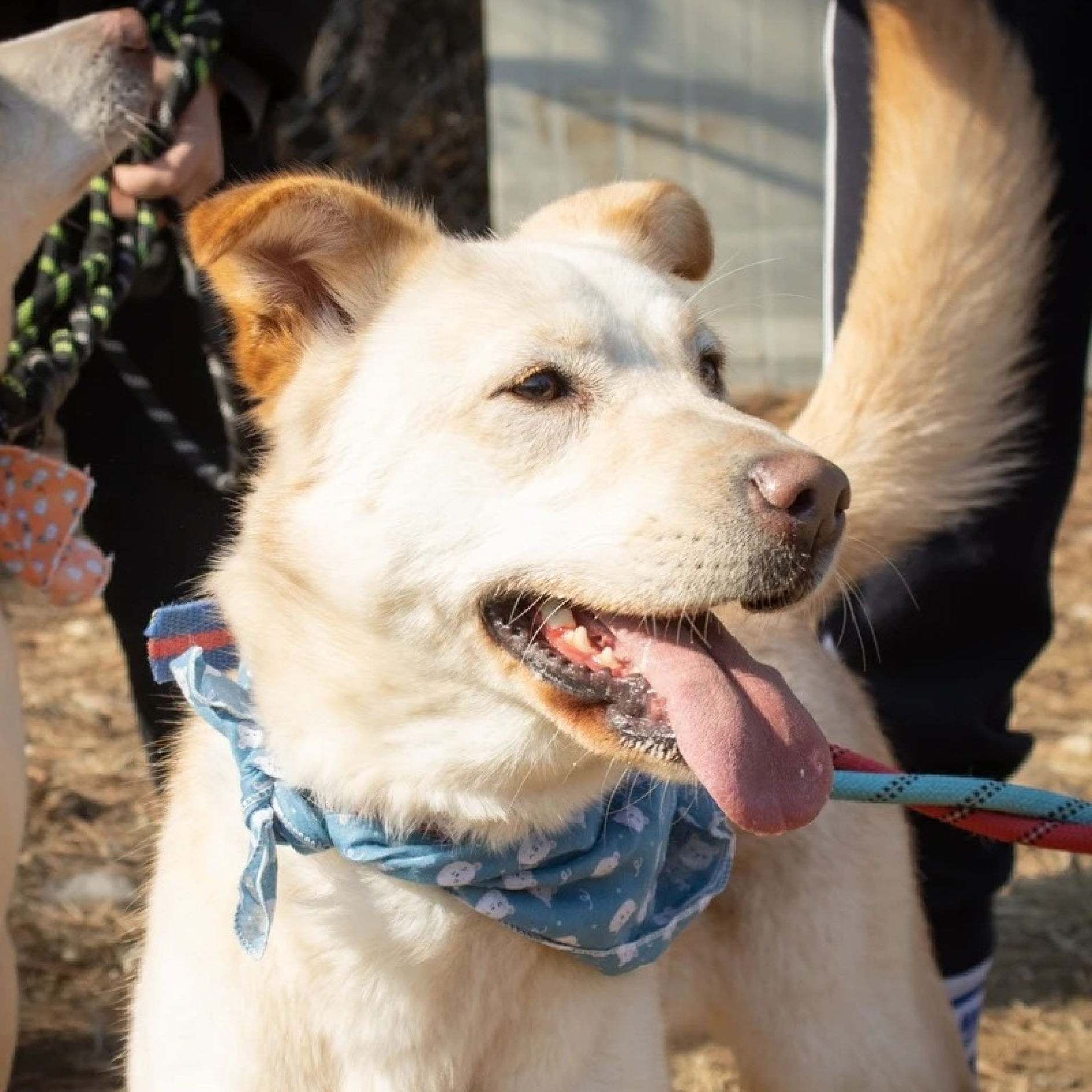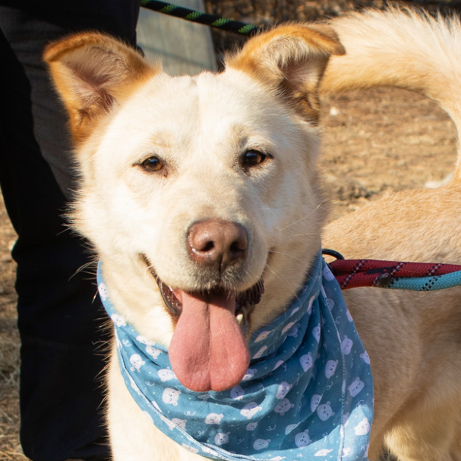 Kobe ist ein 14 kg schwerer männlicher Jindo-Mix, der im Jahr 2022 eingetroffen ist, ungefähr zur gleichen Zeit wie sein Zwingerkamerad Rex. Kobe ist ein fröhlicher Hund, der es genießt, draußen mit seinem Zwingerkameraden und den Menschen zu sein. Sein niedliches Gesicht ähnelt dem eines Golden Retrievers und verleiht ihm ein charmantes und sanftes Aussehen. Kobe gibt seinem besten Freund Rex ein gutes Beispiel, indem er ihm zeigt, wie man sich während des Spaziergangs entspannt und die wunderbaren Düfte, Anblicke und Leckereien genießt, die das Leben so großartig machen!