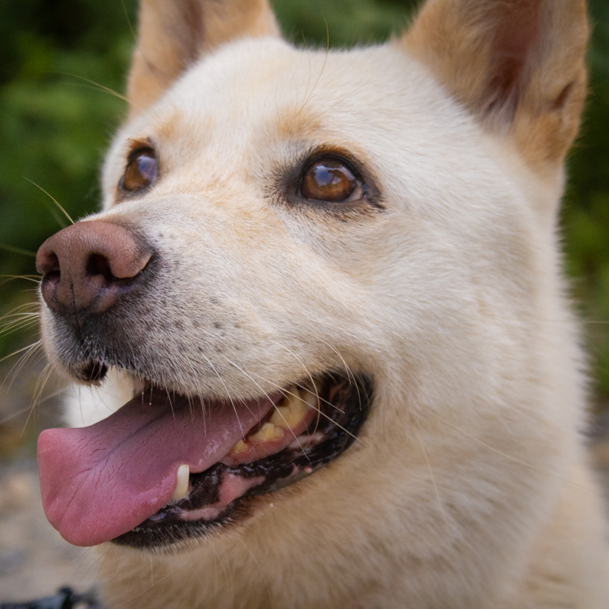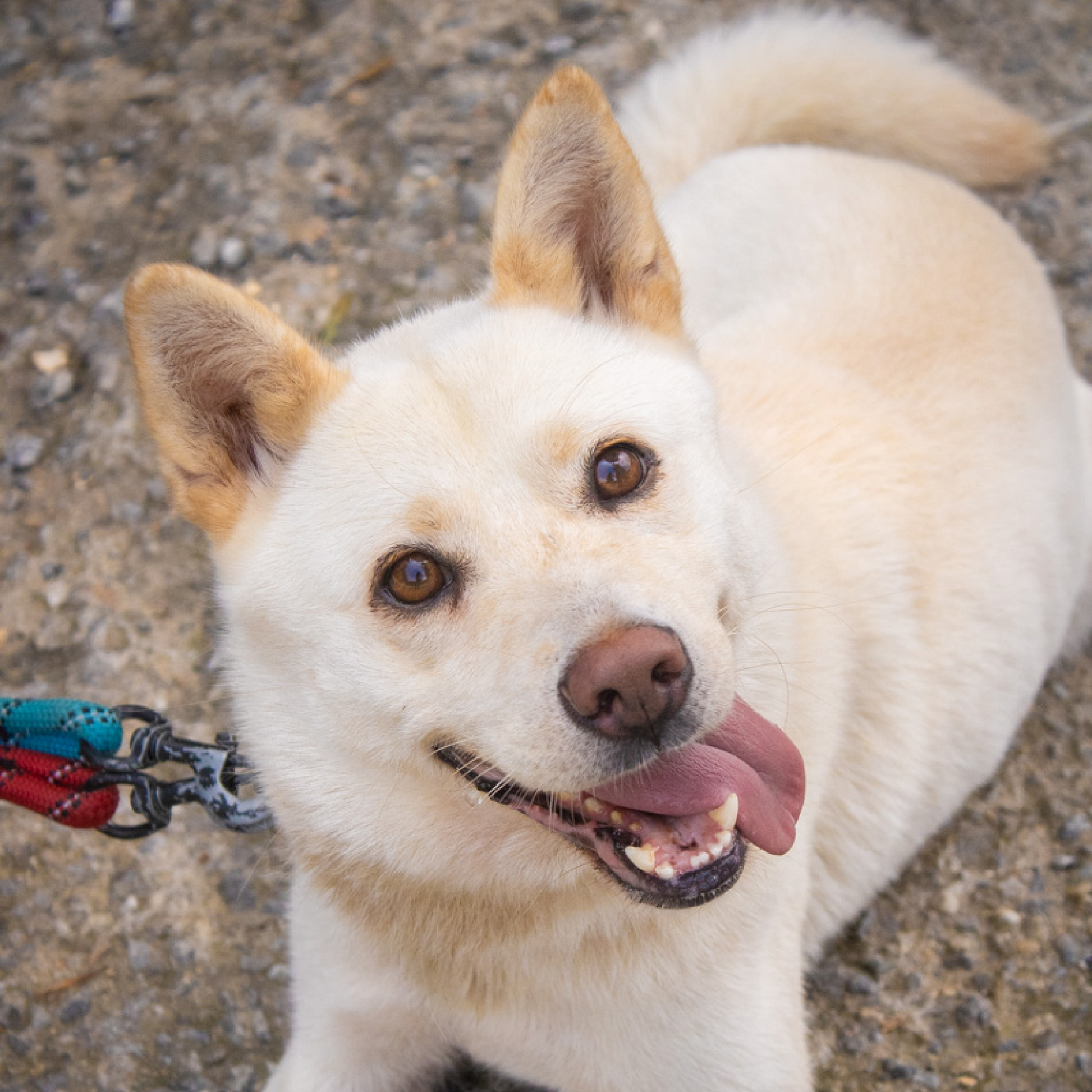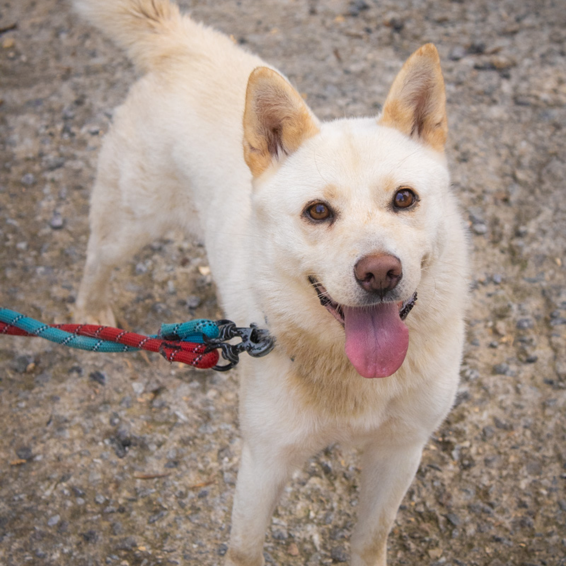 Hallo zusammen, trefft Lapras! Lapras ist ein 15 kg schweres, 2 Jahre altes Jindo-Mix-Mädchen, das im Mai 2023 zu uns kam. Trotz ihres zerzausten Aussehens und dem Anschein, in letzter Zeit Mutter geworden zu sein, hat uns Lapras von dem Tag an, an dem sie ankam, mit ihrer süßen und sanften Art überrascht. Sie liebt den Kontakt zu Menschen, gibt Küsse und genießt Bauchreibungen. Wenn die Kamera herauskommt, zeigt sie stolz ihre strahlend schönen Augen und ein hübsches Lächeln! Obwohl sie vielleicht ein wenig Schüchternheit gegenüber plötzlich bewegten Objekten und einigen zu schnell näher kommenden Hunden zeigt, ist das verständlich, da sie sich immer noch an ihre neue Umgebung gewöhnt. Insgesamt scheint Lapras wie ein echtes Juwel von einem Hund, der ein wunderbares Zuhause verdient, um sie selbst zu sein!