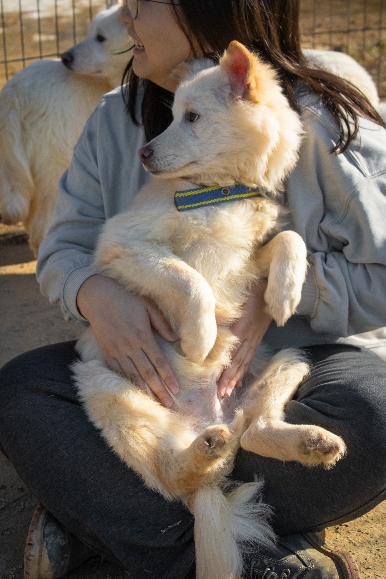 Unsere Hunde werden von Fleischfarmen gerettet oder von der Straße aufgenommen und in unser Tierheim gebracht. Daher haben wir keine Informationen darüber, wie sie sich gegenüber Katzen oder Kindern verhalten.