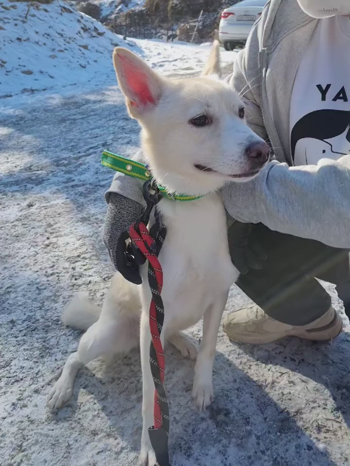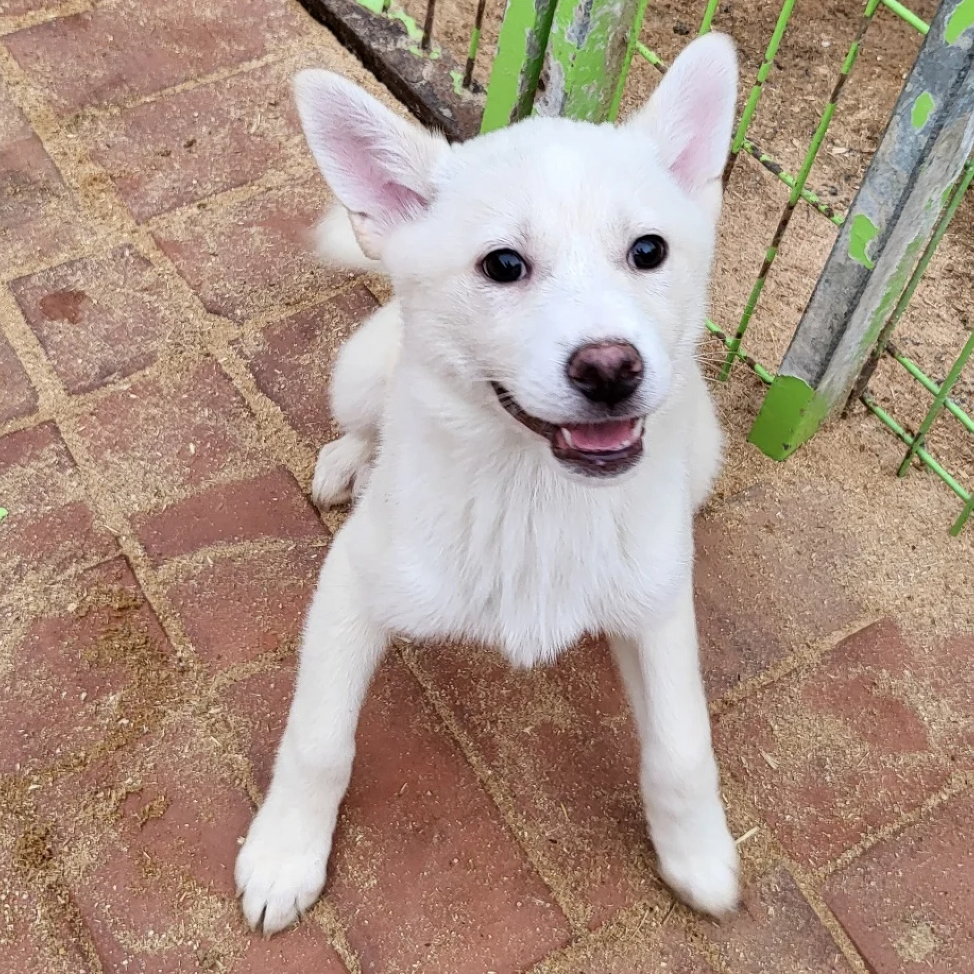 Treffen Sie Moana, ein bezauberndes Jindo-Mischlingswelpenmädchen, das zusammen mit ihren drei Schwestern im Januar 2022 in unser Tierheim kam. Leider verstarb ihr vorheriger Besitzer, wodurch sie und ihre Mutter zurückblieben. Die Mutter fand aufgrund ihrer freundlichen Natur schnell ein neues Zuhause. Diese vier Welpen sind alle unglaublich süß und sanft, weshalb wir sie "Disney-Prinzessinnen-Welpen" genannt haben! Da ihre Mutter zierliche 11 kg wog, gehen wir davon aus, dass diese Welpen in etwa dieselbe Größe erreichen werden. Moana, unser helles cremefarbenes, sorgloses Prinzessinnenwelpen, hat eine verspielte Seite und kann ziemlich albern sein! Wie ihre Geschwister ist sie in dieser neuen Welt etwas schüchtern. Aber sobald sie sich in ihrer Umgebung und mit neuen Menschen wohl fühlt, erhellt sie den ganzen Raum! Moanas rosa Nase und süßes Lächeln gewinnen sicherlich jedes Herz. Moana hat eine ganze Welt zu erkunden und freut sich darauf, dies mit jemandem zu tun, den sie liebt!