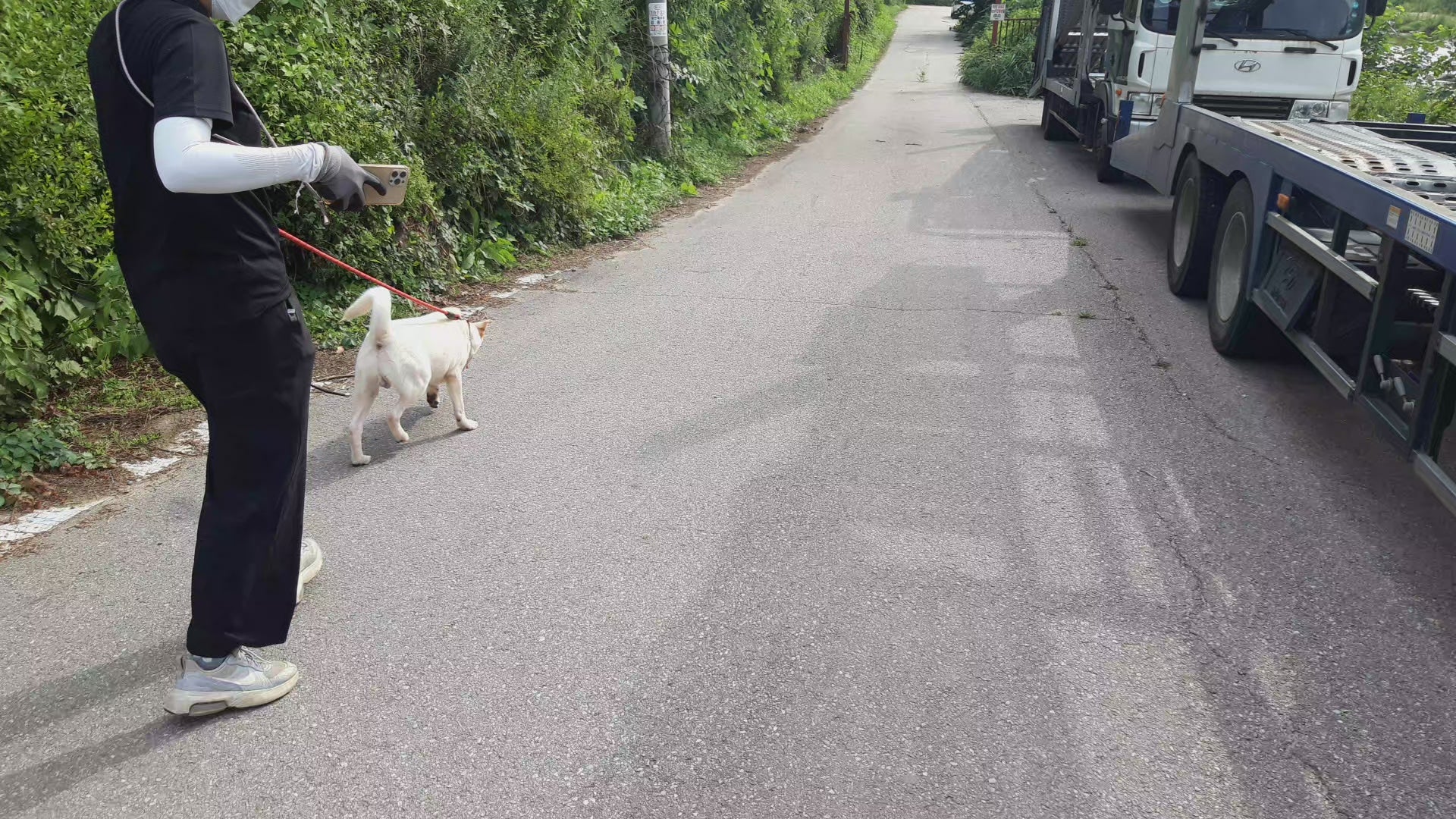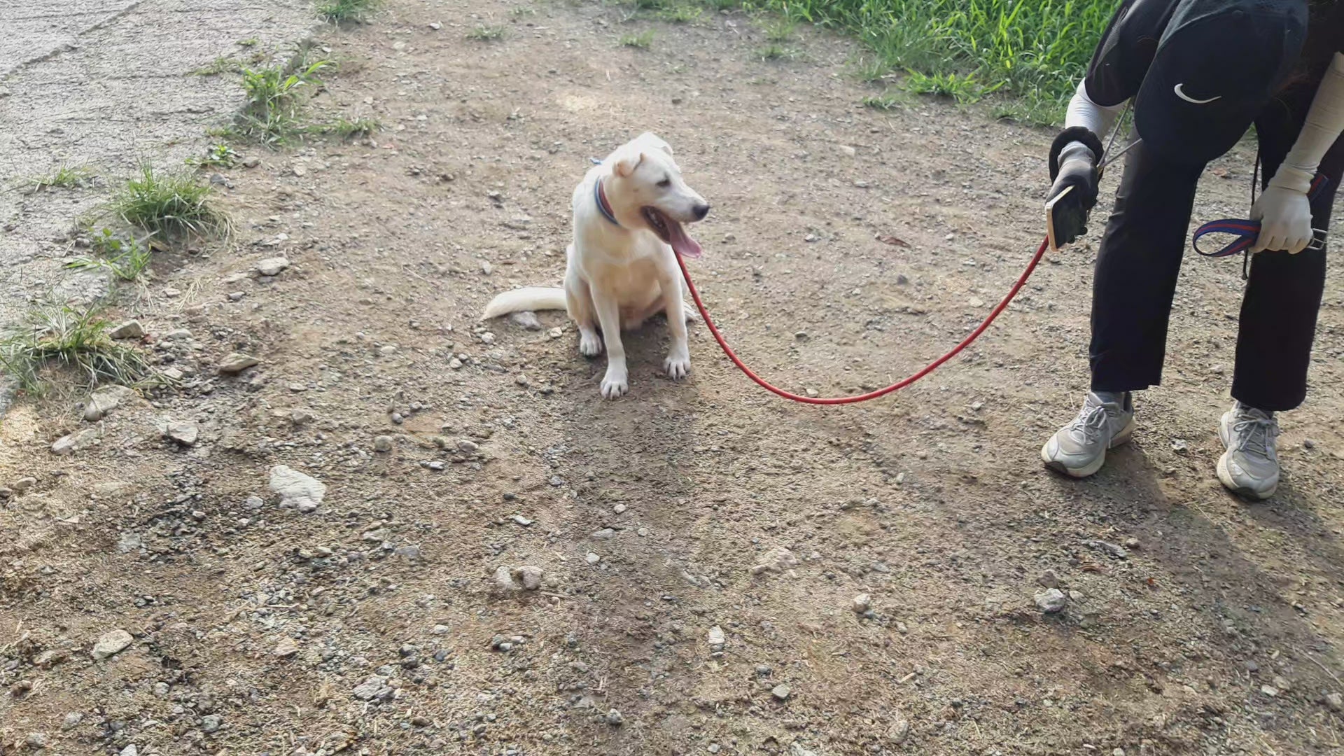"Der Junge war kaum aus seinem Zwinger herausgekommen, also war er noch nicht bereit, herauszugehen. Aber als er draußen war, hat er sich wunderbar geschlagen. Das änderte sich natürlich, als er Treppen sah, dann zögerte er wieder. Während unseres Spaziergangs hat er viel geschnüffelt, als würde er die Luft der Freiheit in sich aufnehmen. Und auf dem Rückweg war er der Tapfere, der den kleinen Hügel nach Hause hochging, während seine Zwingerkollegen größtenteils liegenblieben und hofften, dass sie jemand trägt! Er braucht nur ein wenig Übung und wird schon bald ein guter, selbstbewusster Junge sein!!"
