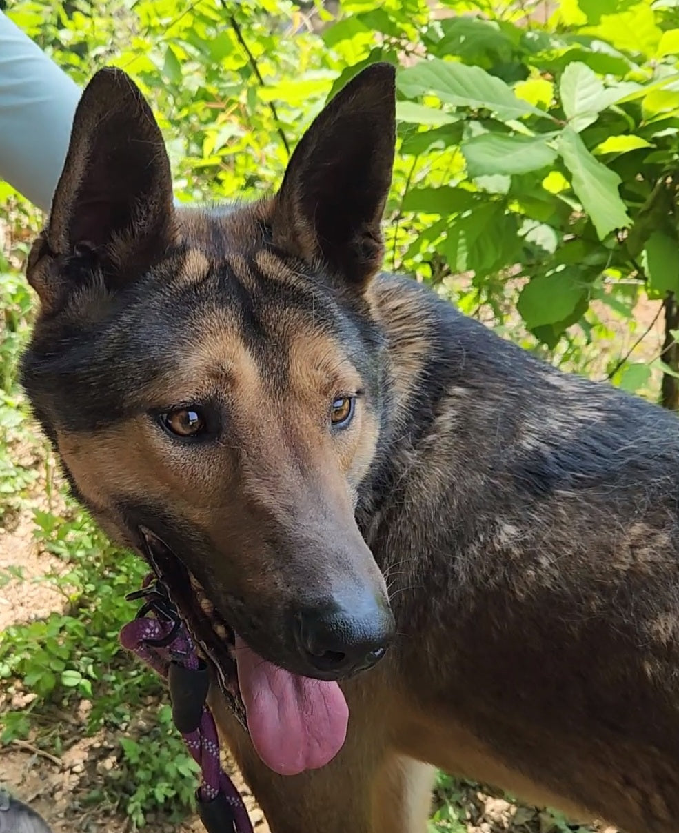 Mustang ist einer der größten seiner Geschwister, hat eine sehr schlanke Statur und ein wunderschönes schwarz-braunes Fellmuster.
