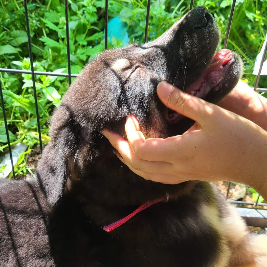 Naon ist der größte der verbleibenden Geschwister. Er war als Welpe etwas schüchtern, aber das hat sich geändert! Er hat während seiner Sozialisierungssitzungen so viel Selbstvertrauen gewonnen, obwohl er immer noch lieber von Menschen gekuschelt wird, als mit anderen Welpen zu spielen. Er reagiert gut auf Zuruf, da er immer den nächsten Menschen im Blick hat. Von den vieren ist er wahrscheinlich der am wenigsten extrovertierte in seiner Familie. Er ist hauptsächlich daran interessiert, mit Menschen zu kuscheln! Insgesamt ist Naon ein süßer, liebevoller und gutaussehender Junge, der in den meisten Haushalten gut zurechtkommen würde!
