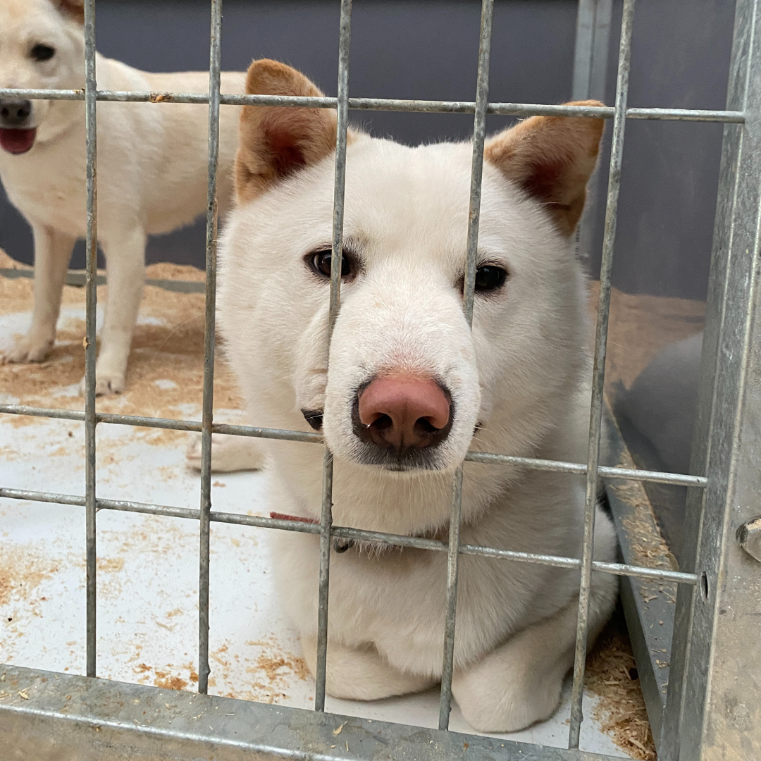 Geschätzt im Jahr 2018 geboren, ist Olaf (benannt nach dem Schneemann aus Frozen) ein 15 kg schwerer männlicher Jindo, der 2019 in unser Tierheim aufgenommen wurde. Der süße Olaf ist ein riesiger Niedlichkeitsfaktor mit einer kleinen rosa Knopfnase! Er macht etwas Lustiges, bei dem er seine Nase aus dem Zwinger streckt, während er sich entspannt. Olaf ist auch sehr nett zu seinem Mitbewohner, Rabbit. Er ist ein wenig nervös und reaktiv gegenüber fremden Hunden und Menschen, aber Olaf erkennt unsere Freiwilligen und Mitarbeiter und liebt es, wenn wir ihn begrüßen kommen! Er öffnet sich sehr schnell und ist ein süßer Junge, der einfach das Leben genießt und auf die perfekte für immer Familie wartet, die er lieben kann.