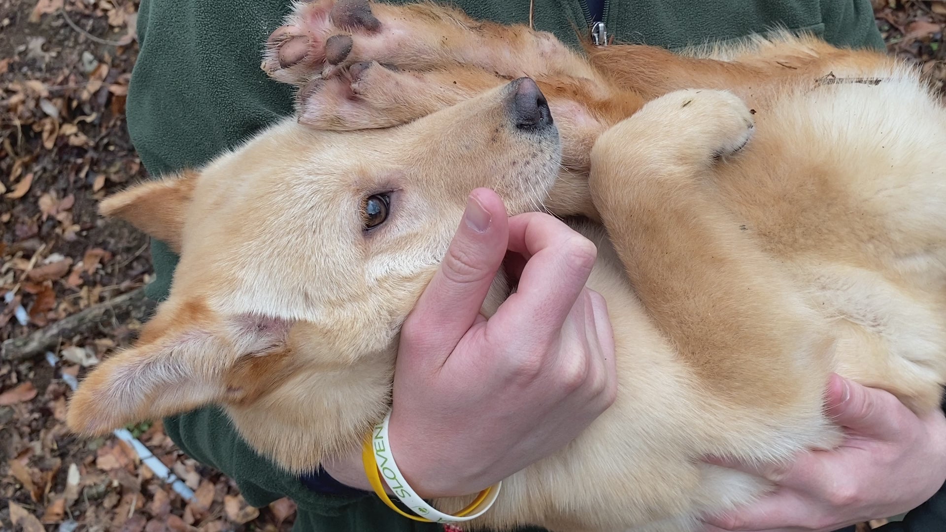 Pebbles ist ein süßes Mädchen, eine mittelgroße/kleine Mischung aus Jindo, die mit ihren beiden Geschwistern Bambam und Barney zu uns ins Tierheim kam. Die drei wurden letztes Jahr auf der Straße gefunden und streiften alleine herum, ohne dass jemand oder ihre Mutter in Sicht war.