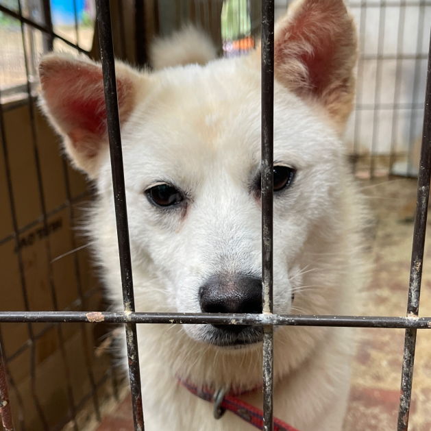 Pomie geriet in Panik, wenn jemand versuchte, sie anzufassen, und bellte vor Angst vor Menschen. Sie hat aufgrund eines Hautproblems, das durch den Stress im Tierheim verursacht wurde, viel Fell an ihrem Bein verloren. Derzeit erhält sie medizinische Behandlung, um ihre Haut wiederherzustellen, und nimmt an Trainingseinheiten teil, um das Leinegehen zu erlernen und sich mit menschlicher Berührung vertraut zu machen.