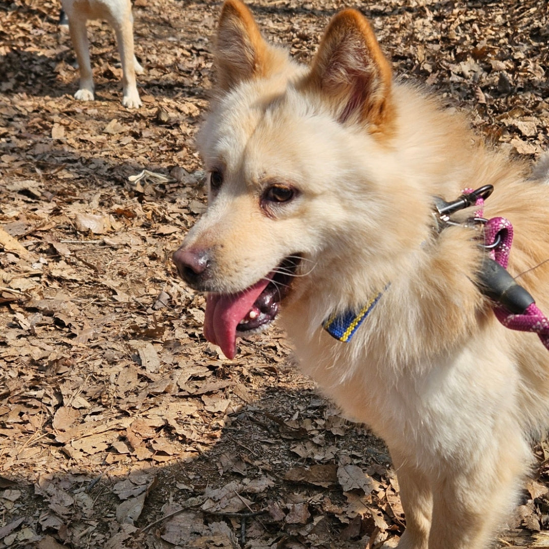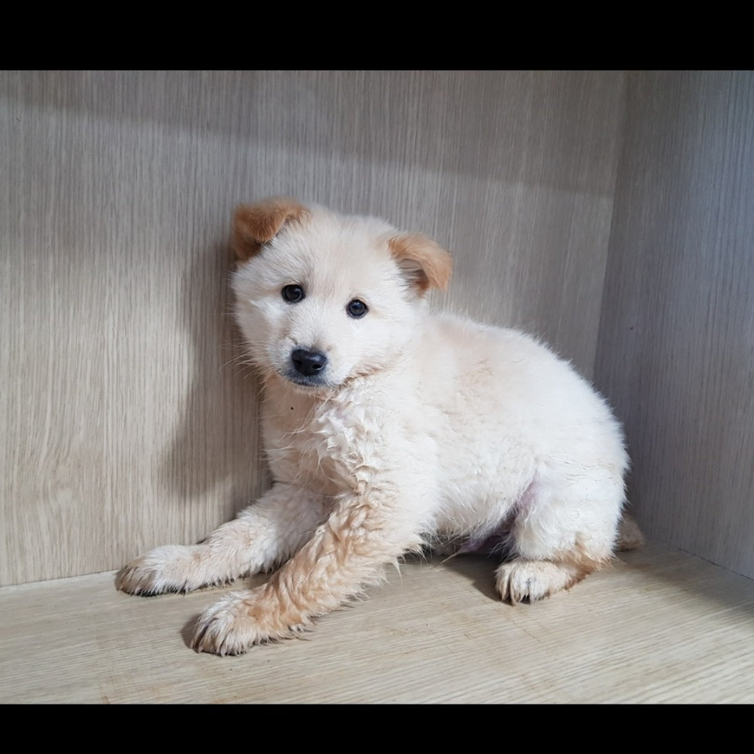 Geboren etwa im September 2021, ist Royce ein männlicher, flauschiger Mischlingswelpe der Rasse Jindo, der im November 2021 in unser Tierheim aufgenommen wurde. Er und sein Bruder Bentley, benannt nach Autos, wurden auf der Straße gefunden, als sie gerade zwei Monate alt waren und ohne ihre Mutter. Die beiden waren die einzigen in der Nähe, also wurden sie ins Tierheim gebracht. Die Auto-Geschwister waren super flauschig und mollig, als sie zu uns kamen, und seither sind sie in ihr Fell und ihre Speckröllchen hineingewachsen! Sie sind ziemlich schüchtern, da sie die neue Welt ohne ihre Mutter erkunden müssen, aber sie lernen langsam mit uns, dass es schön ist zu kuscheln und Spaß macht, nach draußen zu gehen. Royce ist der bräunlichere der beiden Geschwister mit seiner schwarzen Nase und den traurigen Augenbrauen! Er wächst in sein Fell hinein und scheint auf dem Weg zu einem langhaarigen Hund zu sein! Royce lernt schnell und genießt sogar das Spielen im Auslauf mit den anderen Welpen und seinem Bruder!