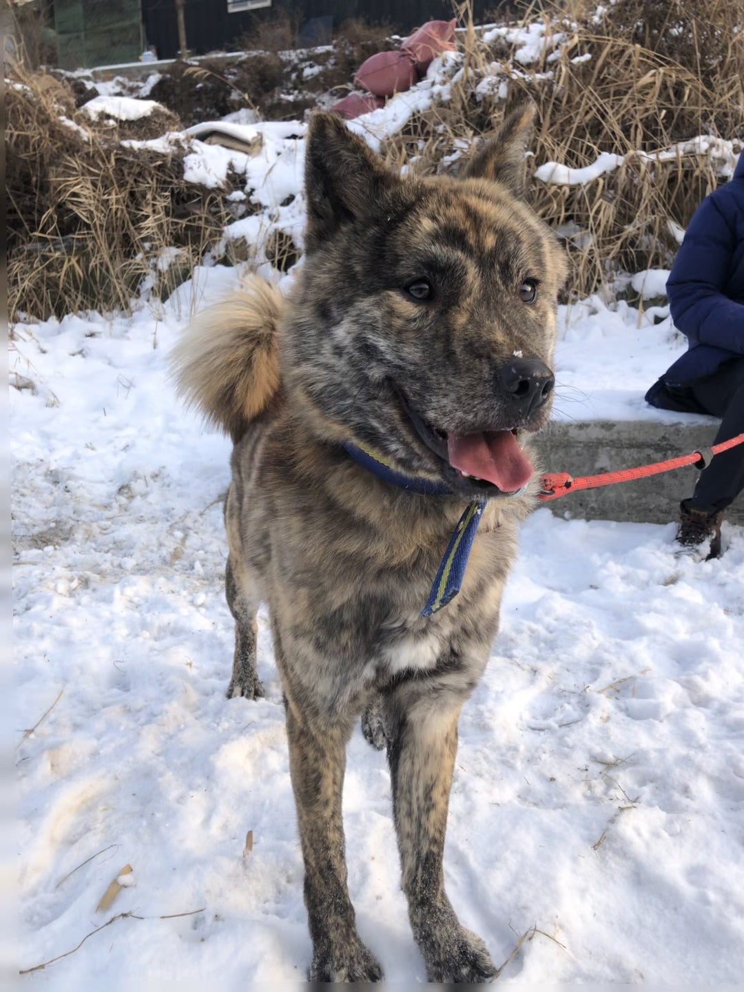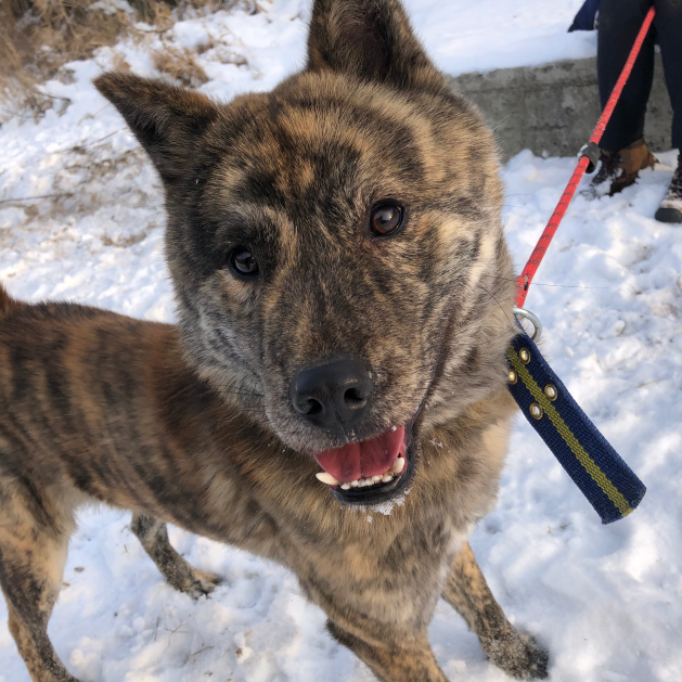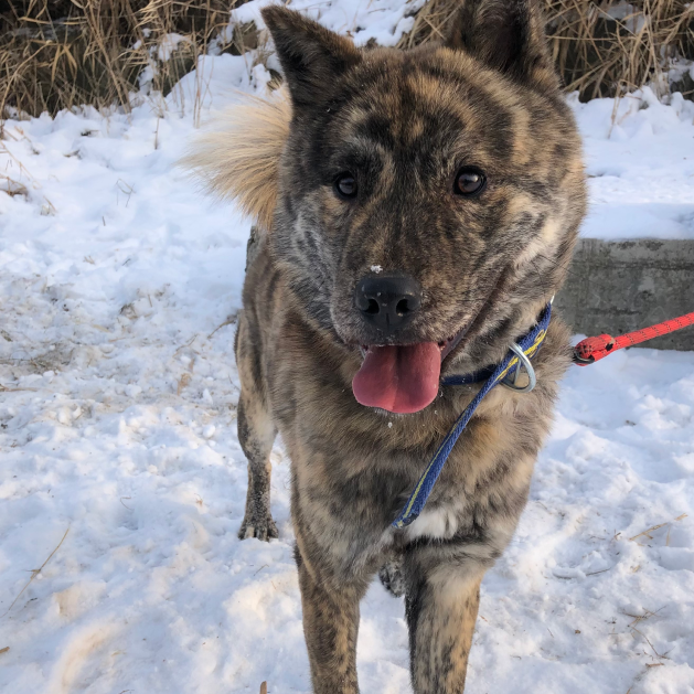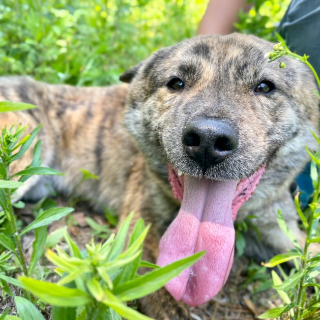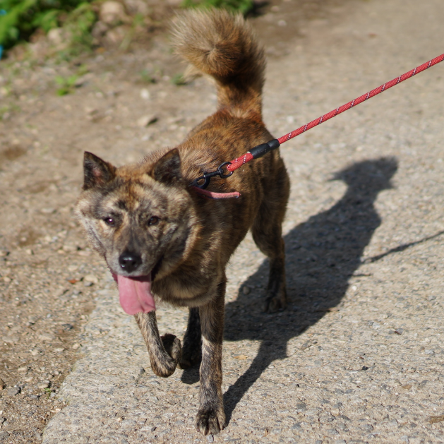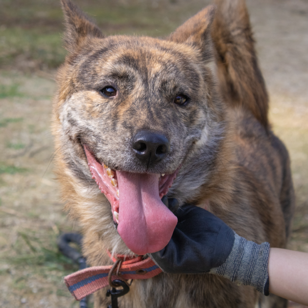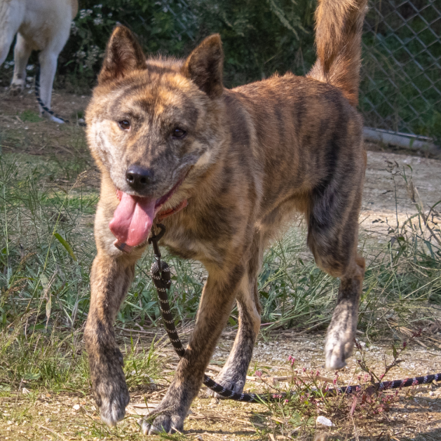 Liebe Tierfreunde, stellt euch Salem vor! Salem ist ein attraktiver gestreifter Jindo-Mix, der im November 2020 zu unserem Tierheim gekommen ist. Er wurde auf der Straße mit einem Halsband gefunden. Wir haben nach einem Mikrochip gesucht, aber leider hatte er keinen. Seitdem ist er bei uns im Tierheim. Salem ist nun schon über 2 Jahre bei uns und bereit für sein für immer Zuhause! Er hat ein wunderschönes gestreiftes Fell, das ihn wie einen kleinen Tiger aussehen lässt. Außerdem hat er den süßesten Unterbiss der Welt, was besonders einzigartig ist, da er ein größerer Hund ist! Salem ist ein fröhlicher und energiegeladener Junge, der es liebt, draußen spazieren zu gehen! Er ist kräftig und zieht manchmal ziemlich stark an der Leine, wenn er im Abenteuermodus ist. Aber er hört gut auf Menschen und ist sehr aufmerksam. Manchmal wird er etwas zu aufgeregt und nervt seinen Zimmergenossen, der ihm dann sagt, er solle aufhören. Salem braucht einfach jemanden, der mit ihm zusammen seine Energie ausleben kann! Er wäre ein fantastischer Abenteuerkamerad!