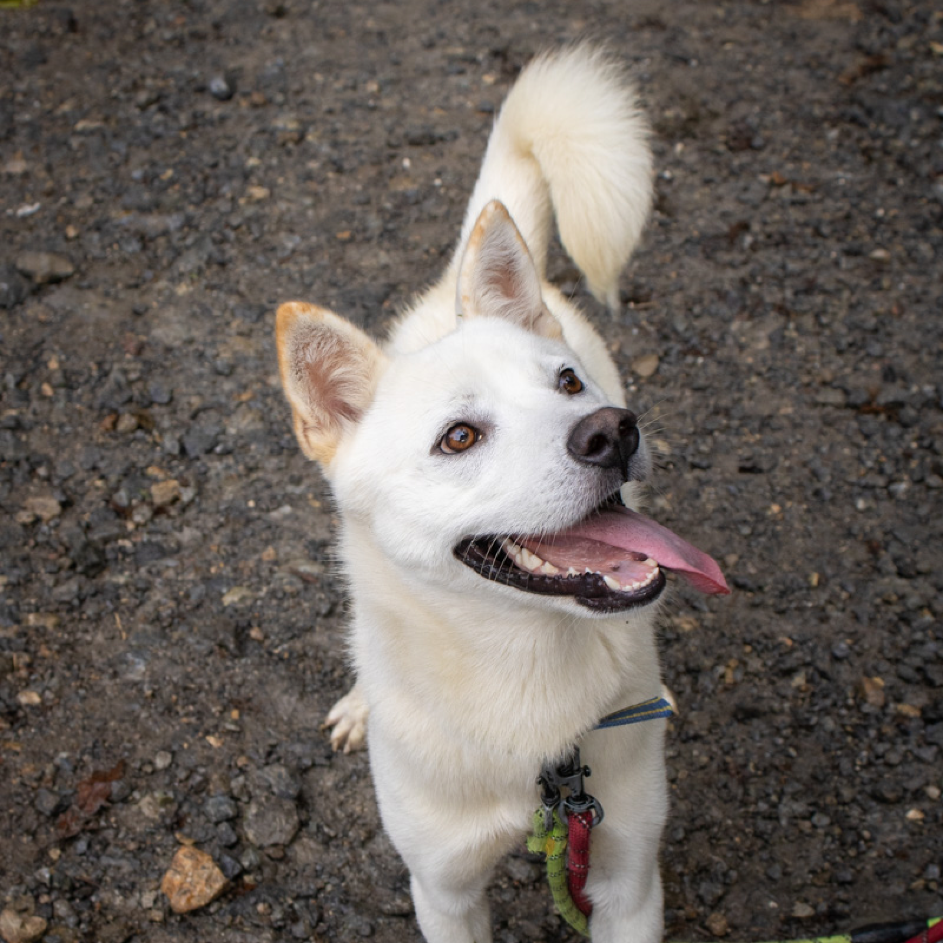 Hier ist Vincent, ein 20 kg schwerer junger Jindo-Junge, der immer noch diese Welpenenergie hat! Er kam 2023 zu unserem Tierheim und liebt es absolut, mit seinen freiwilligen Freunden herauszukommen und eine tolle Zeit zu haben!