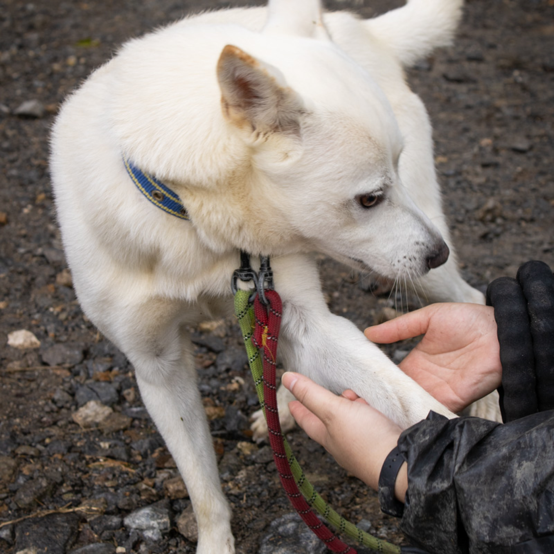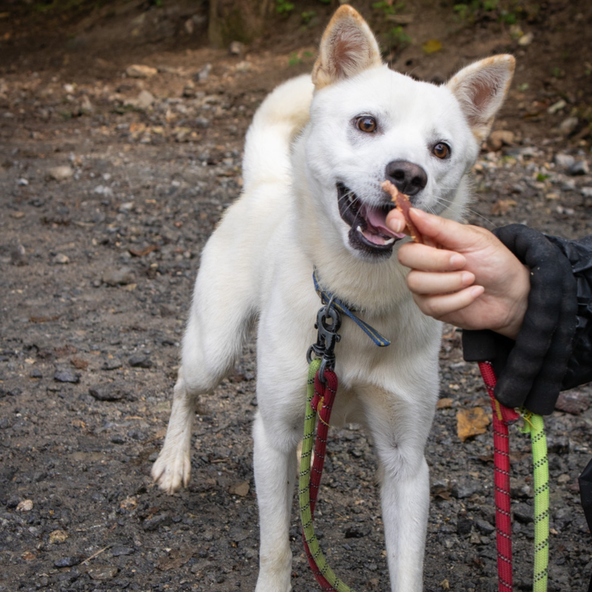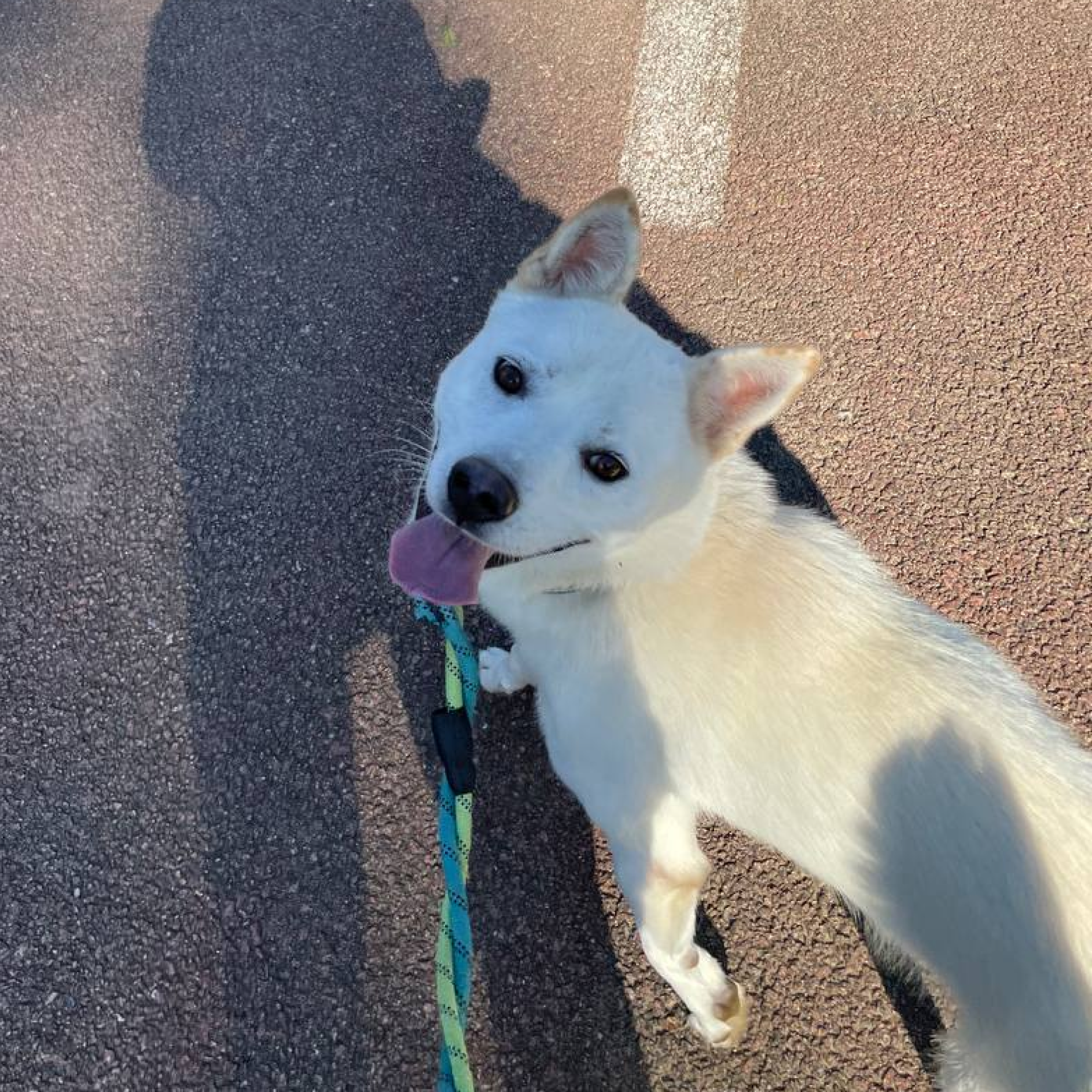 Hier ist, was ein Freiwilliger, der kürzlich Zeit mit Vincent verbracht hat, über ihn zu sagen hatte: "Vincent ist ein wunderschöner weißer Jindo. Er war wunderbar zu laufen, zog ein wenig, aber nicht zu stark, einfach glücklich, draußen zu sein. Er wollte jeden treffen, Mensch und Hund, auf unserem Spaziergang. Einer der freundlichsten Hunde, die ich je spazieren gegangen bin, mit einer überschwänglichen, fröhlichen Energie. Wenn Leckerlis draußen waren, war Vincent bereit und aufmerksam, zeigte seine Tricks und saß wunderschön für Fotos. Er war so fotogen. Beim Spielen mit einem Spielzeug war er absolut begeistert. Vincent ist ein wunderbarer Junge, der sich in einem Zuhause, das gerne erkundet, großartig machen würde."